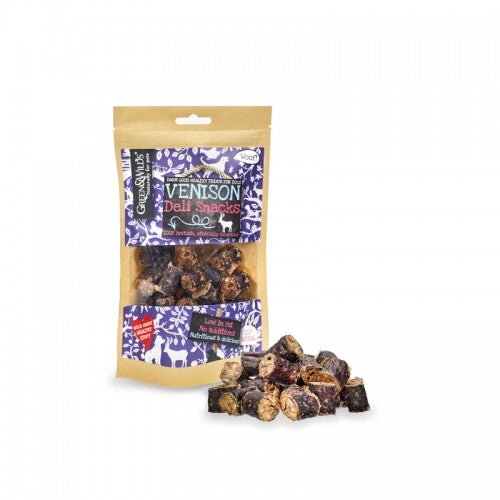 Venison has fewer calories, less fat and more iron than any other type of meat. Our 100% air dried Venison Deli Snacks are not only low in fat, but they are also Gluten Free and Hypoallergenic. Venison also provides protein to help build strong bones and muscles. They are air dried slowly in bite sized pieces to retain all the nutrients and are produced in the UK.