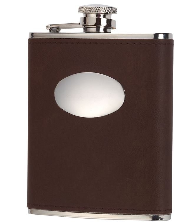 Bisley Brown Leather Stainless Steel Hip Flask by David Nickerson