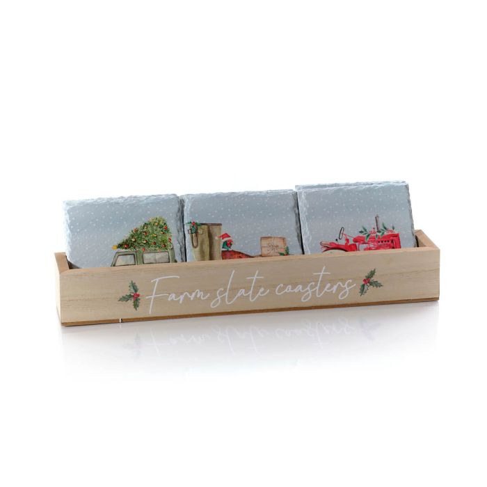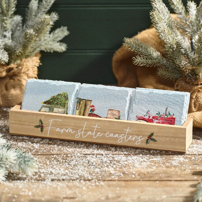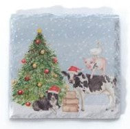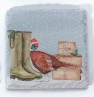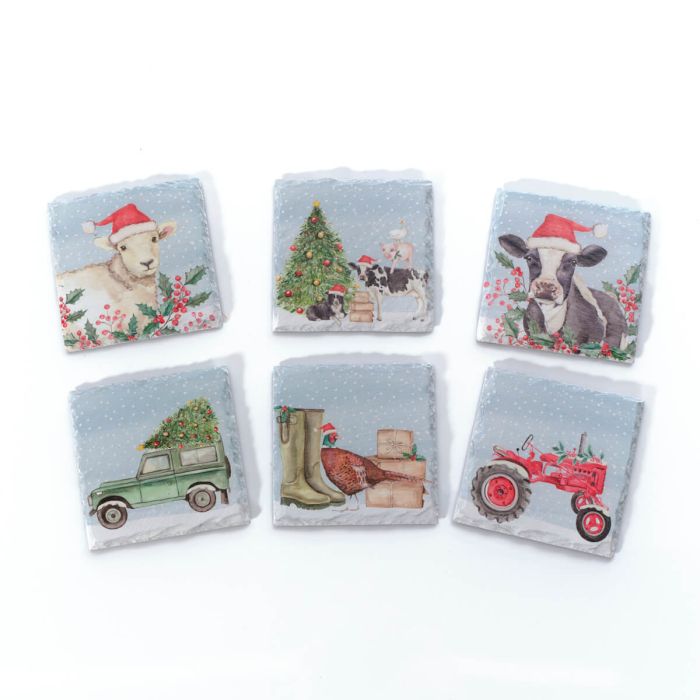 Beautiful hand-painted, festive coasters featuring charming, farmyard designs. The perfect addition to any home during the Christmas period.
