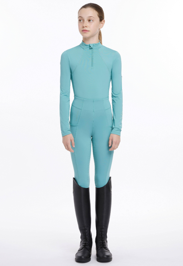 Our performance base layer for active young riders, this technical UV50+ quarter zip base layer is designed to regulate body temperature. Ventilated underarms keep you cool and dry, and the unique technical fabric moves moisture away from the skin to ensure optimum comfort.