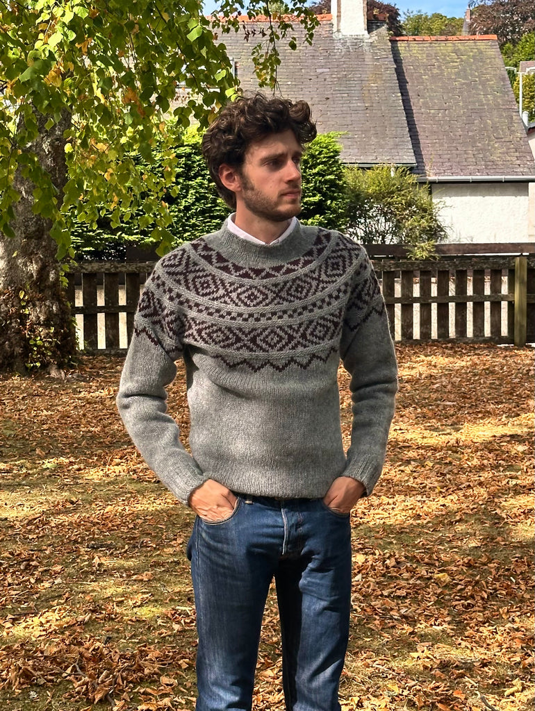 Harley of Scotland Men's 2 Colour Fairisle Yoke Crew Neck Sweater AW25