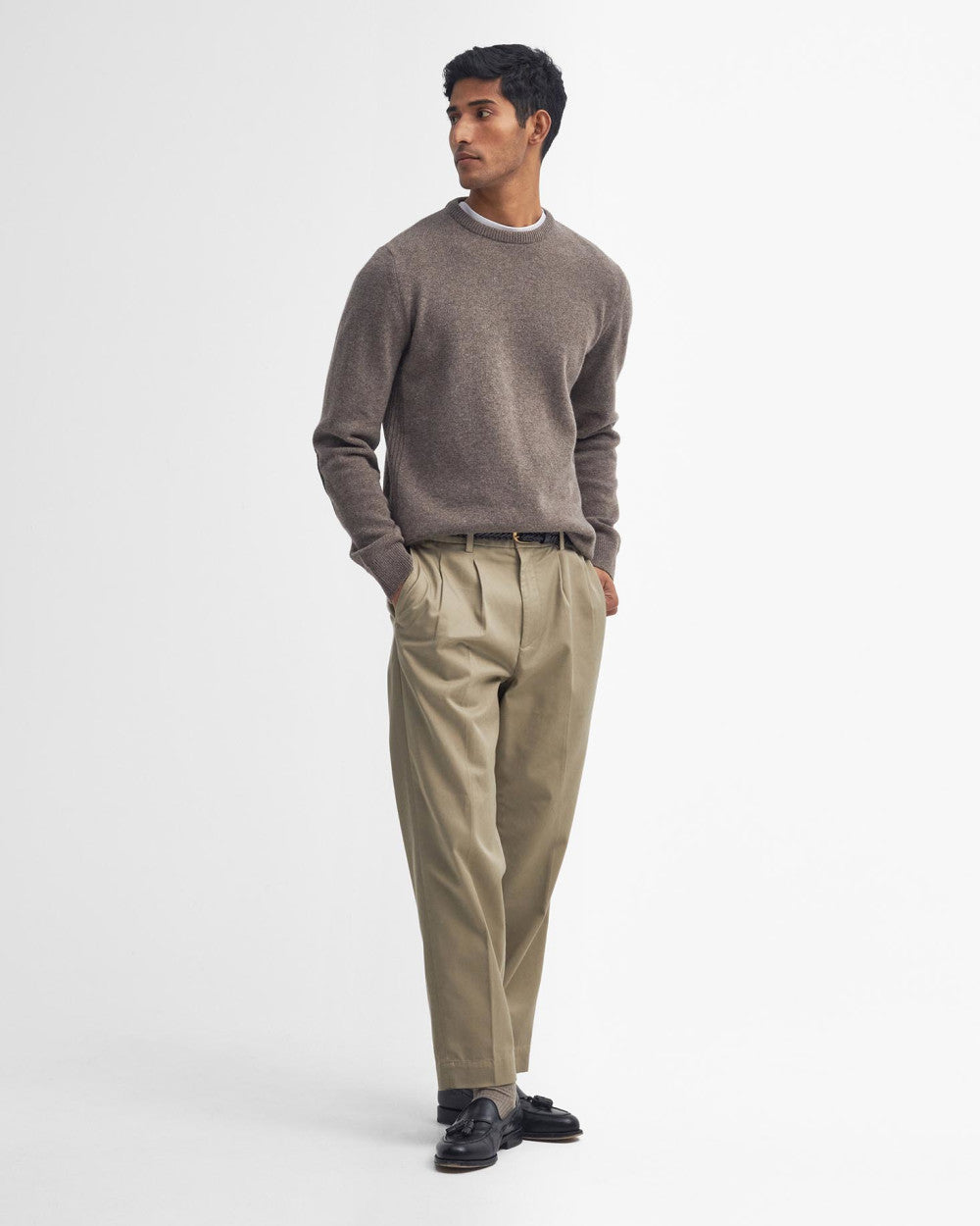 Update your wardrobe with the men's Barbour Holden Crew Neck Sweater. This classic crew neck knitted jumper from Barbour features a ribbed collar and cuffs, providing both style and comfort for everyday wear. The tartan trim to the inner zip adds a touch of sophistication and heritage-inspired charm to the design, while the tartan elbow patches enhance its durability and style. Whether you're heading to the office or enjoying a casual day out, the Holden Crew Neck Sweater is the perfect choice for staying cosy and stylish. Pair it with trousers for a smart-casual look or with jeans for a more relaxed vibe. Crafted with quality materials and attention to detail, this jumper promises both warmth and versatility. Embrace timeless British style with this essential piece from Barbour.