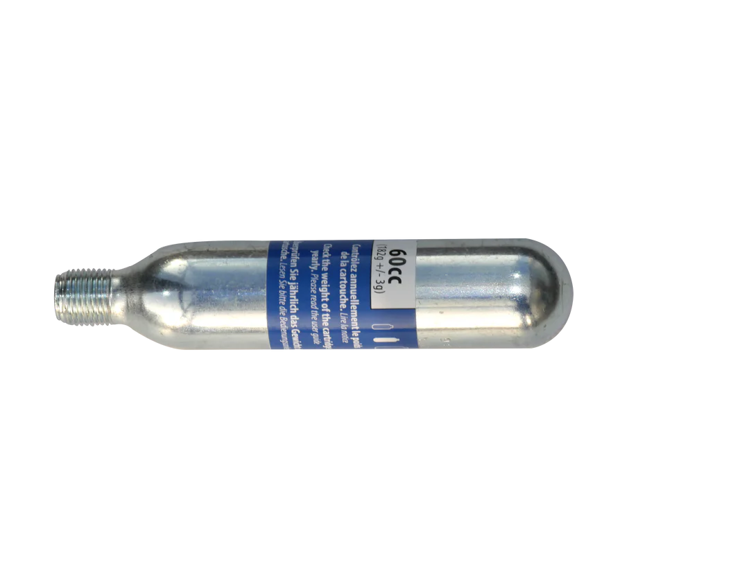 Compressed CO2 canisters, which are suitable for use in the MotionAir air jacket. The MotionAir comes with one Helite canister on purchase, but for replacements, be sure to use a branded canister, as we cannot account for the efficacy/compatibility of other brands of canisters.
