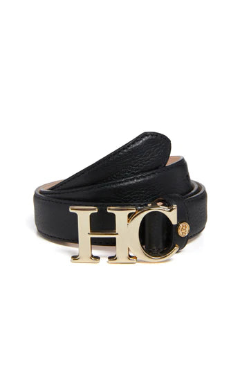 Crafted in the UK with high-quality leather, this belt boasts a slender design for versatility. The nubuck interior and signature HC buckle add a touch of elegance to this accessory, making it suitable for any occasion, from casual to formal.