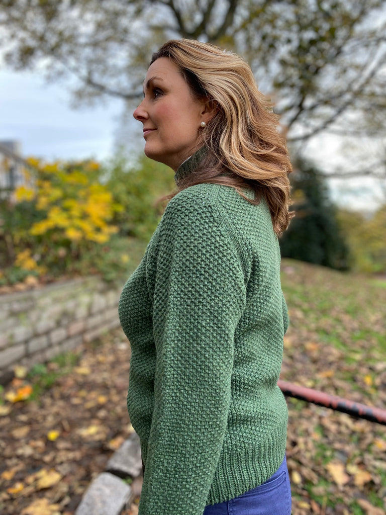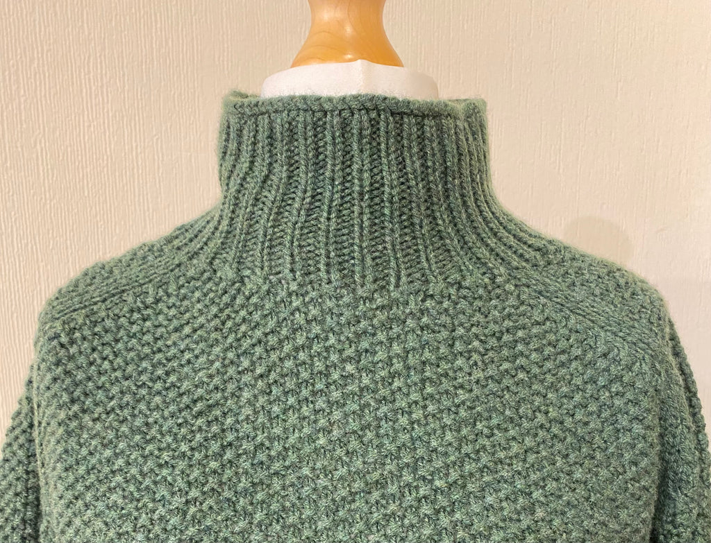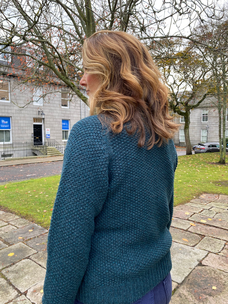 A beautiful,  chunky knit, moss stitch sweater in a new colourway from Harley Of Scotland.