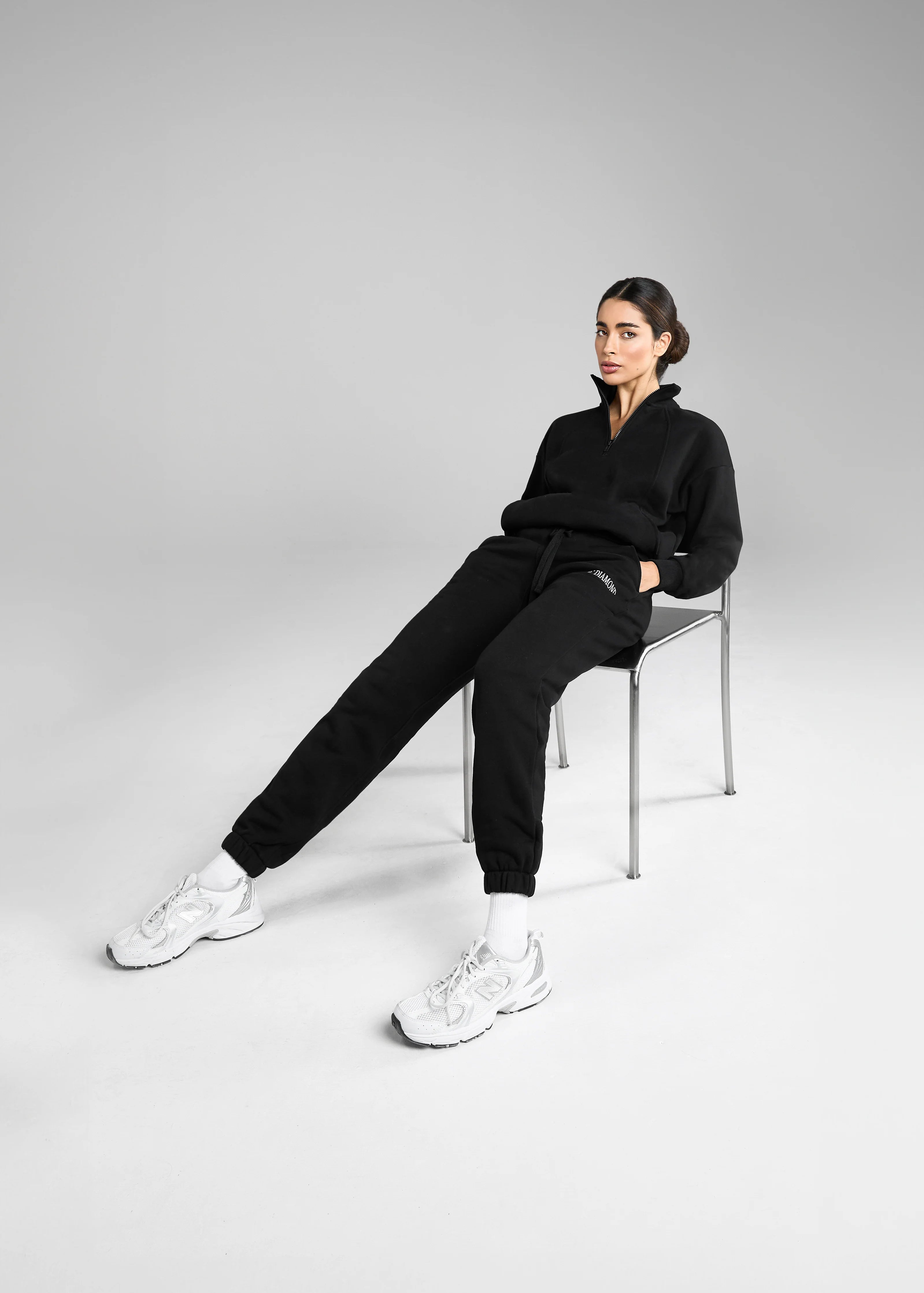 High Quality, soft touch heavyweight cotton jersey fabric Luxury velvet back fabric Two pockets to the front Elasticated waist with draw cord Equestrian Club varsity style embroidery to front left leg 3D chevron logo to back