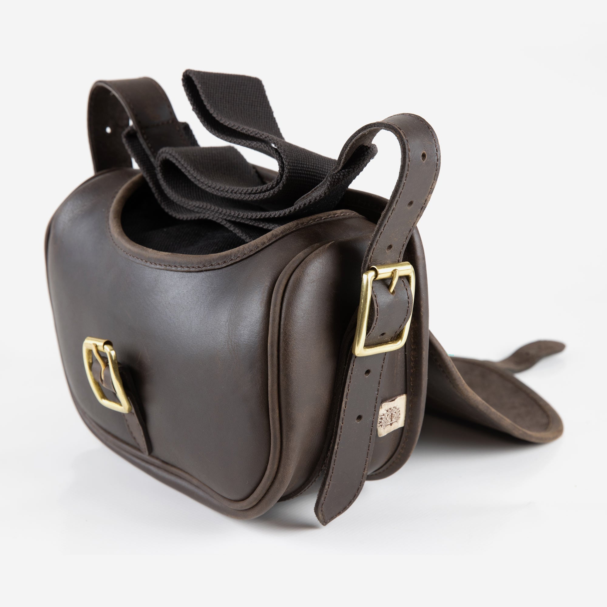 Eine Lederpatronentasche aus hochwertigem Byland-Leder. Handgenäht für perfekte Details und maximale Designstärke. Handgefertigt von Handwerkern, die Experten in der Lederverarbeitung sind und wissen, wie sie ihr volles Potenzial nutzen können. Das Leder ist natürlich trommelgefärbt, um ein perfektes Aussehen und Gefühl zu erzielen. Die Tasche verfügt über einen 2 Zoll breiten Schultergurt aus Baumwollgewebe – dies sorgt für ein angenehmes Tragegefühl der Tasche, selbst wenn sie mit Patronen gefüllt ist. Verschiedene Größen schaffen insgesamt unterschiedliche Lagerkapazitäten – Größen 75 Schalen, 100 Schalen, 150 Schalen. Die Verschlussschnalle aus Messing hält die Tasche fest verschlossen, lässt sich aber leicht öffnen und bleibt am Scharnier offen