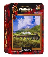 Ein eindrucksvolles Bild des weltberühmten Glenfinnan-Viadukts bereichert Walkers neueste Dose mit verschiedenen Shortbreads. Berühmt wurde das Viadukt durch den Hogwarts-Expresszug aus Harry Potter. Die Dose enthält eine Auswahl an Walker's Shortbread-Formen aus reiner Butter, darunter Dreiecke, Finger, Runden, schottische Disteln und eine kleine Herzform.