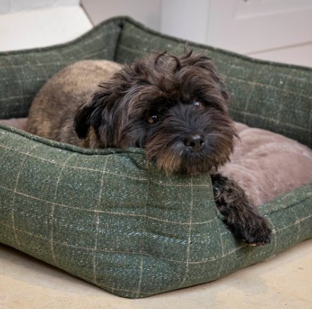 House of Paws Tweed-Plüschtier – Ein lustiges Plüsch-Tweed-Hundespielzeug mit Details aus künstlichem Schaffell.