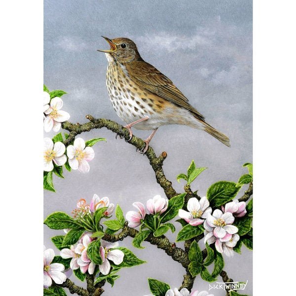 Greeting Card - Song Thrush & Apple Blossom by Dick Twinney