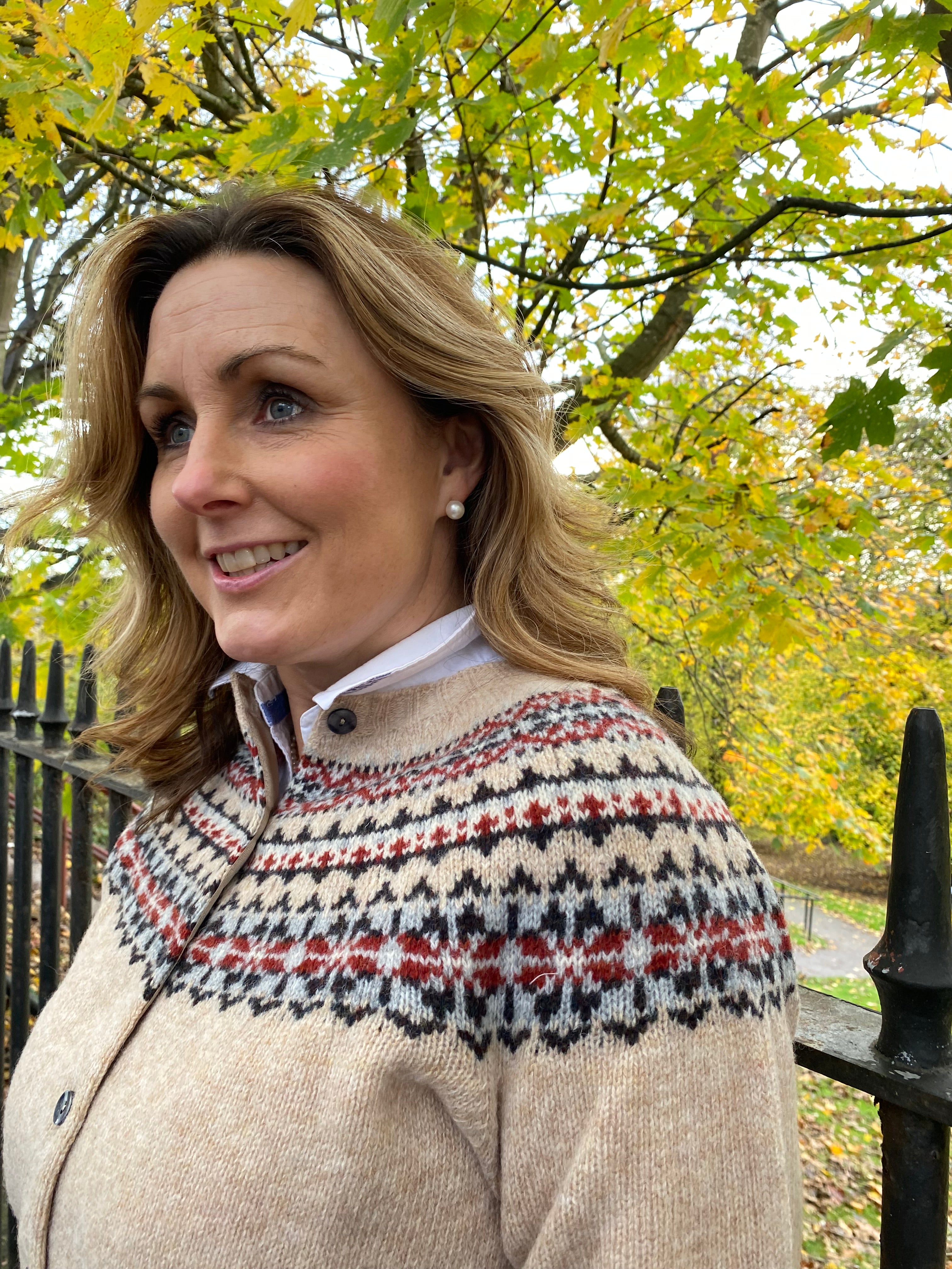 Harley of Scotland Women's Fair Isle Yoke High Button Cardigan AW25