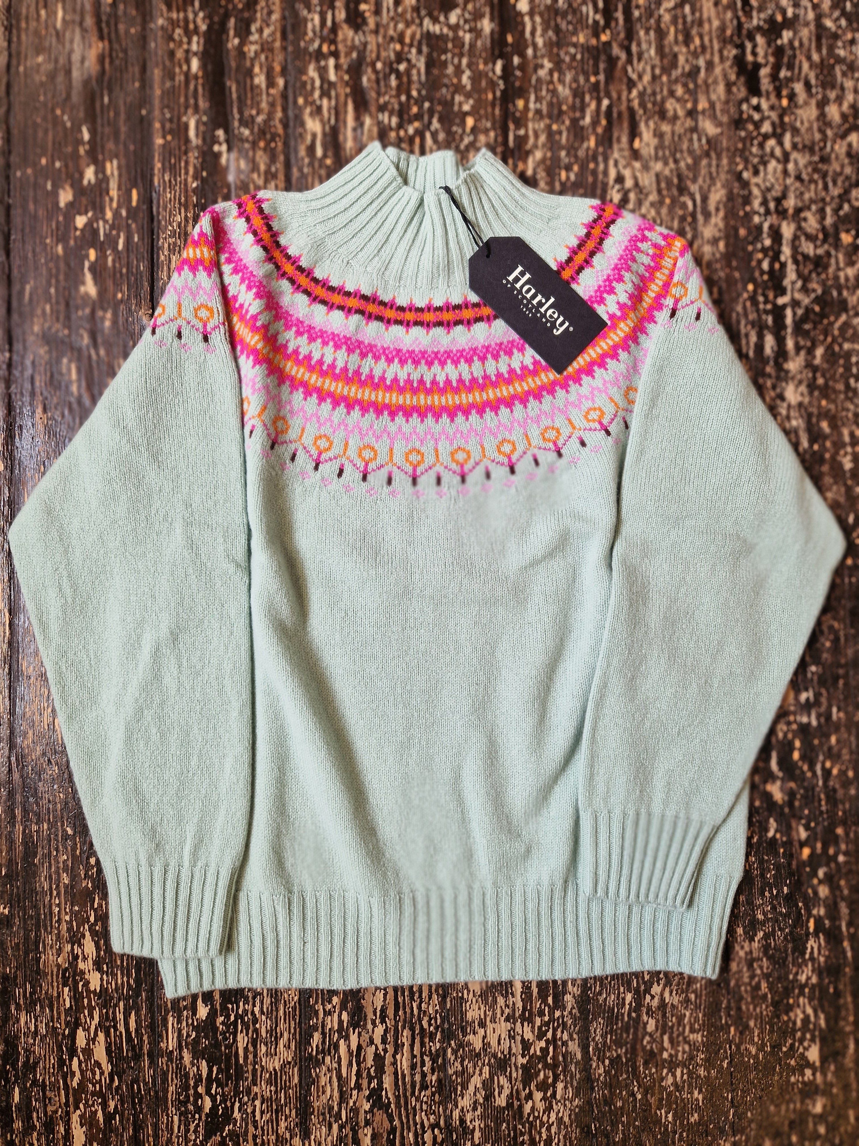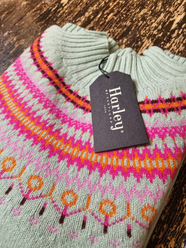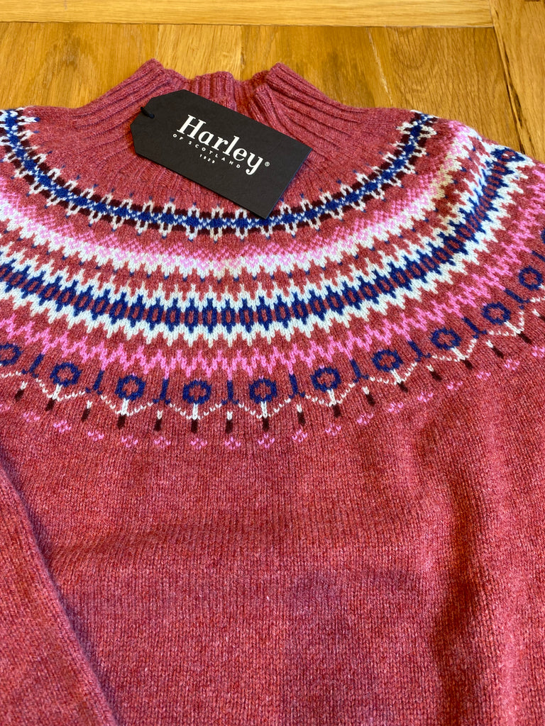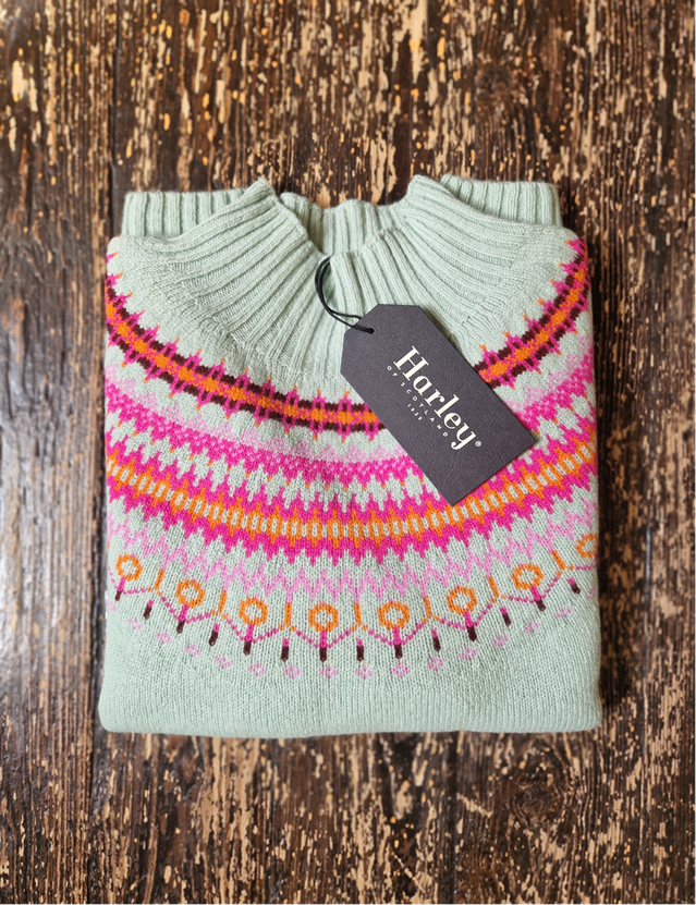 Harley of Scotland Women's Fair Isle Yoke Turtle Neck Sweater SS25