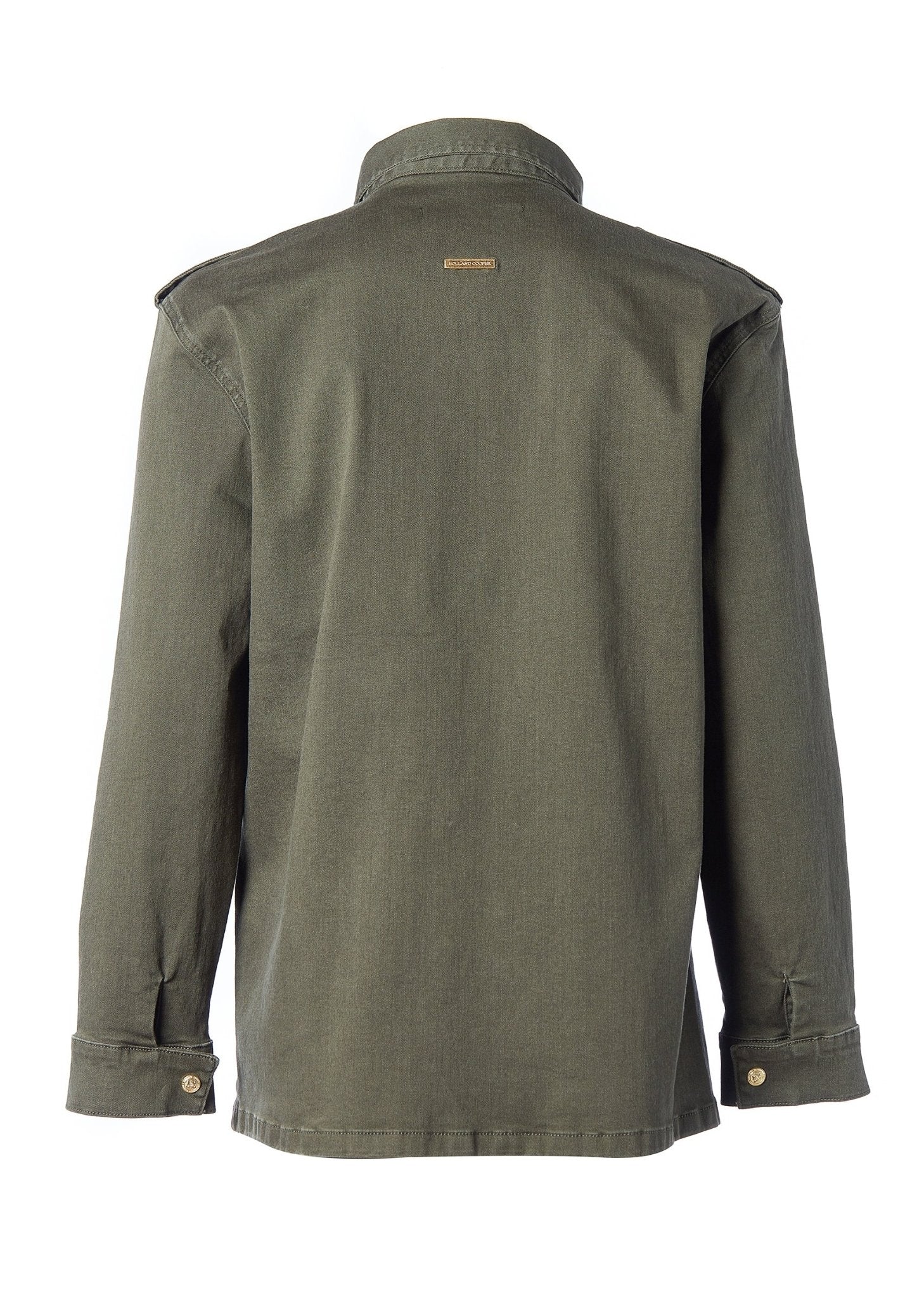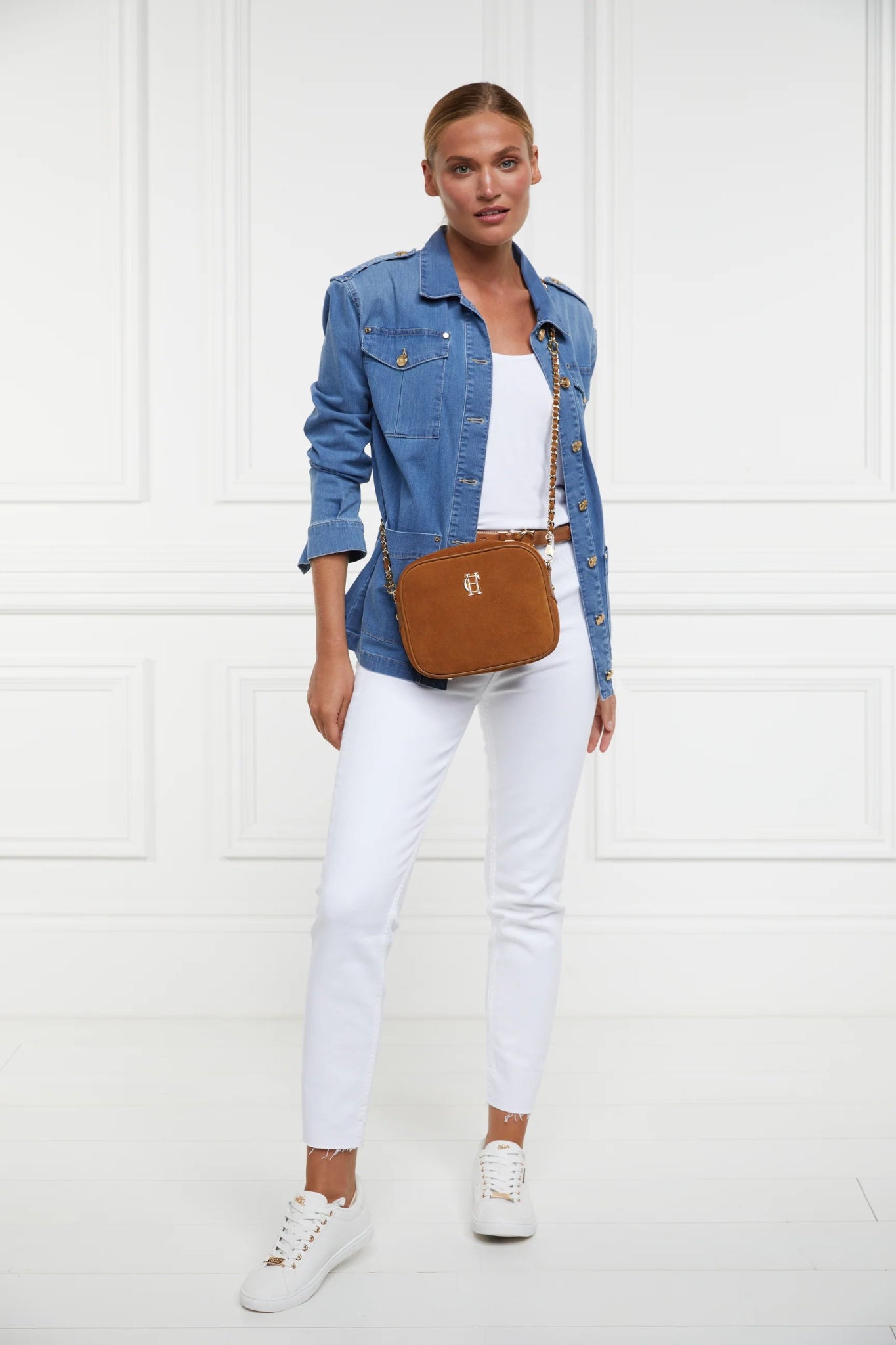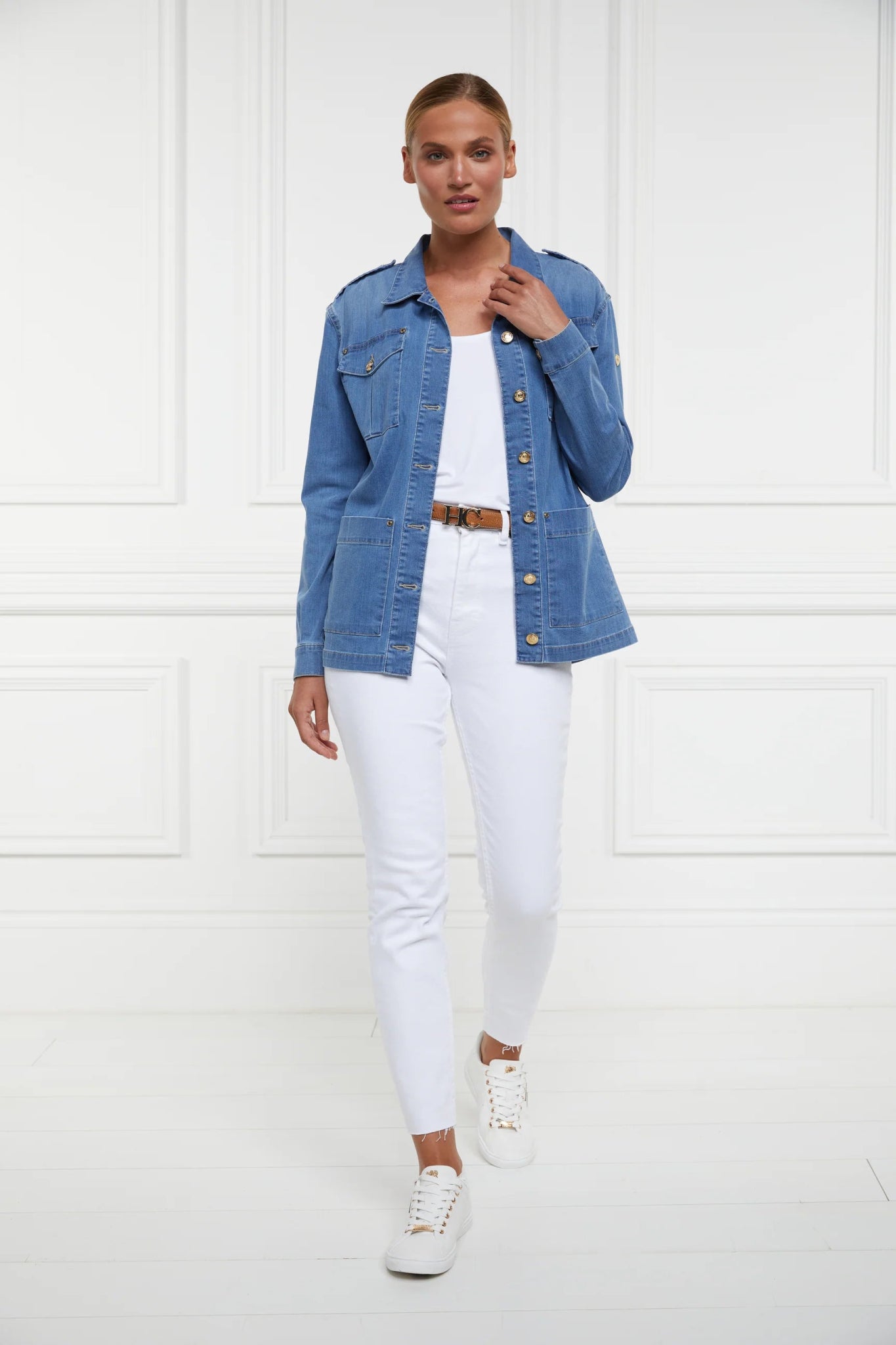 Designed with an oversized and relaxed fit, this jacket wears perfectly open or closed. Curated from a durable denim twill fabric with an internal elasticated adjuster. With traditional military-inspired details with bellowed pockets and shoulder epaulettes, this piece has been created with adjustable long sleeves. Detailed with a Holland Cooper badge and hardware.