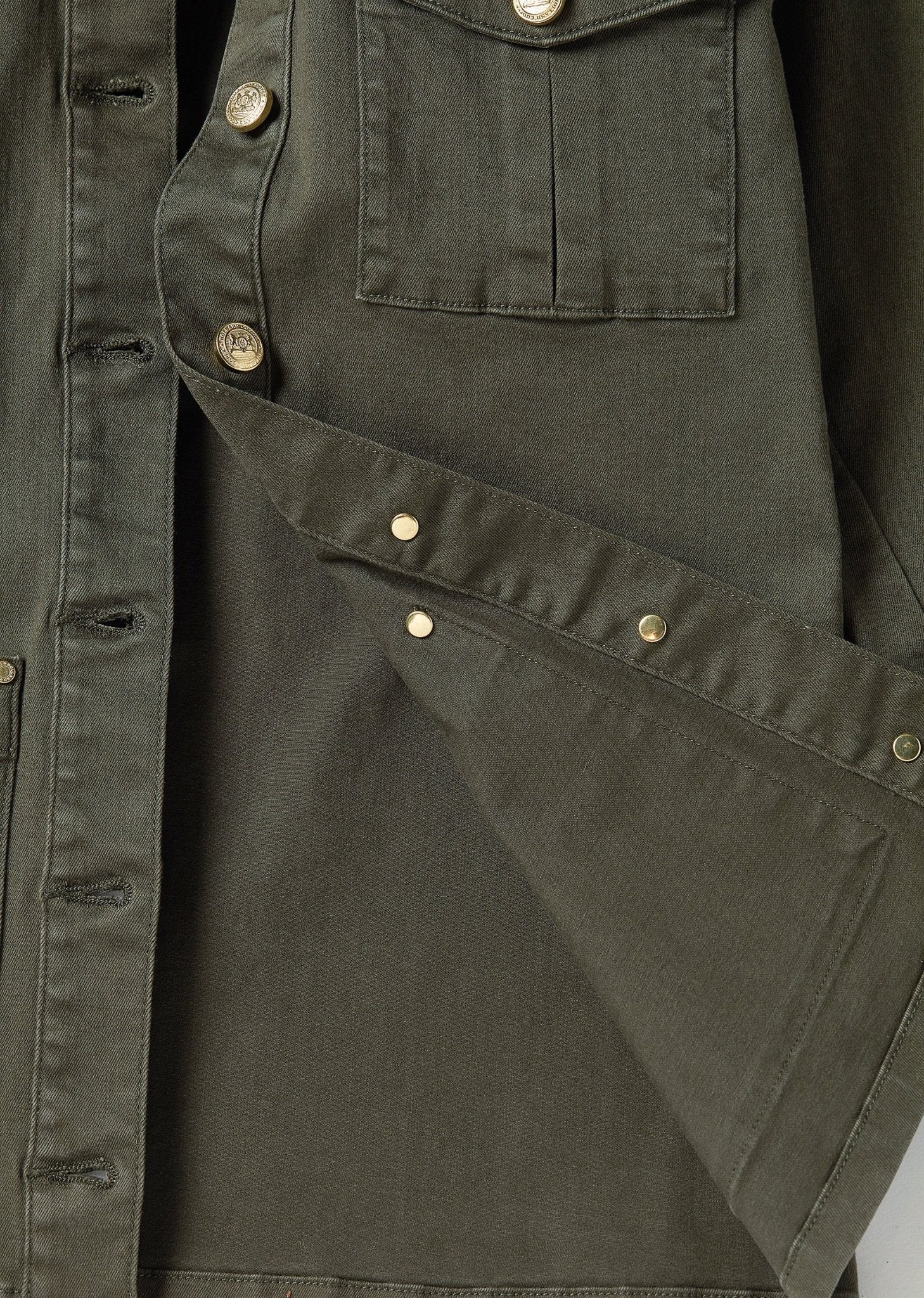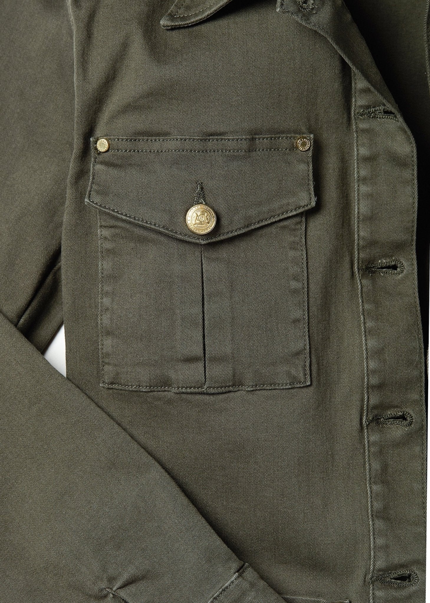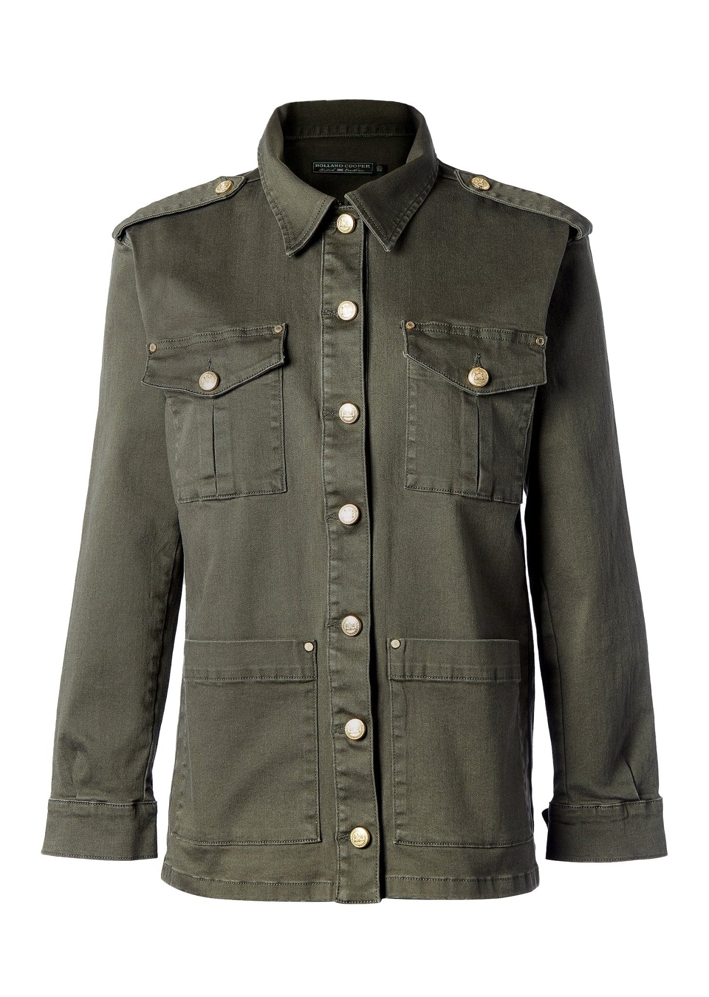 Designed with an oversized and relaxed fit, this jacket wears perfectly open or closed. Curated from a durable denim twill fabric with an internal elasticated adjuster. With traditional military-inspired details with bellowed pockets and shoulder epaulettes, this piece has been created with adjustable long sleeves. Detailed with a Holland Cooper badge and hardware.