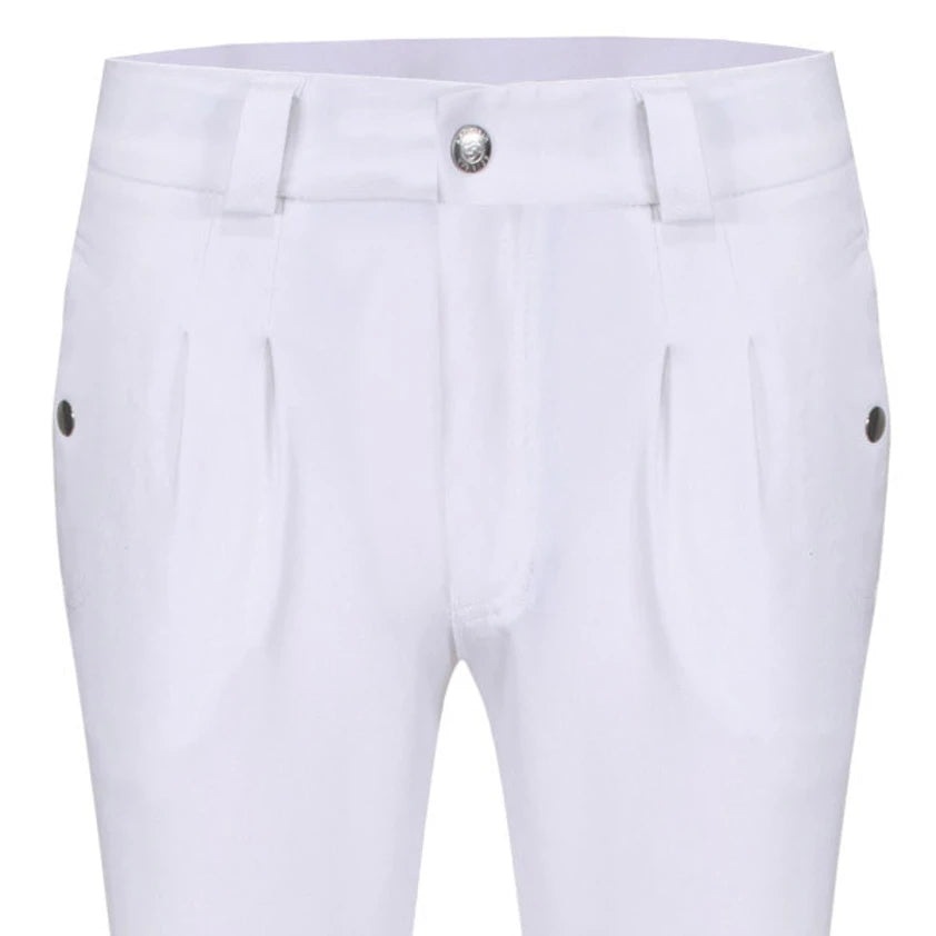Hervorragend sitzende, gewebte, strapazierfähige, alltagstaugliche, erschwingliche Reithose. Verfügt über einen konturierten Sitz aus Stoff, Equetech®-Silikon-Knieschutz, Druckknopftaschen, Lycra®-Einsatz an den Manschetten, Komfortbund und Gürtelschlaufen. Waschmaschinenfest. Gewebt aus 62 % Polyester, 33 % Viskose, 5 % Elastan.