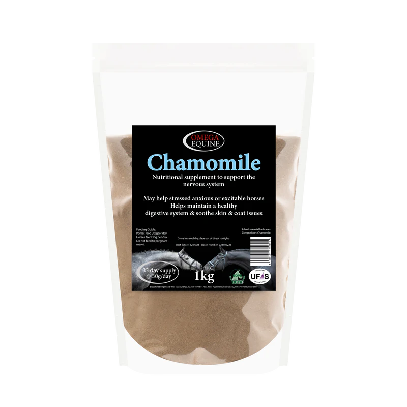 Highly palatable, Omega Equine's chamomile is sourced from a human grade supplier in the UK. This ensures a fresh & delicious product which is safe for both leisure horses & those in competition. Feed daily & enjoy your horse's new, calmer approach to life.