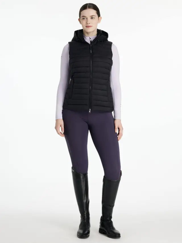 Be prepared for unpredictable, chilly days with this water-resistant gilet. Its detachable and adjustable quilted hood provides versatility, allowing you to adapt to changing weather conditions. The luxurious metal finishings are a testament to the excellent quality you can expect from LeMieux.