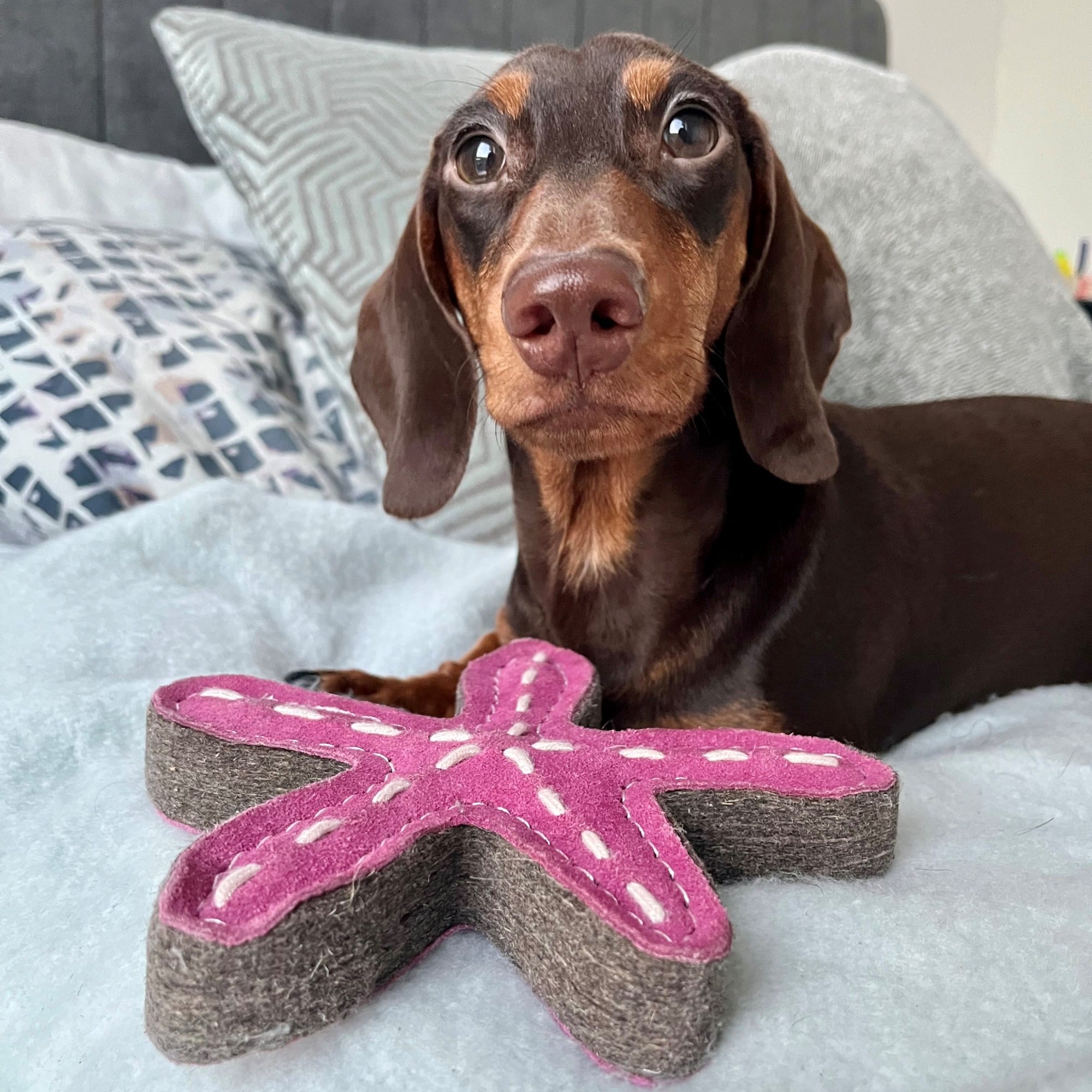 This lovable starfish is made from layers of compressed felt and stitched over with soft suede.