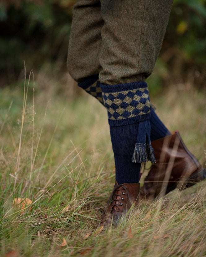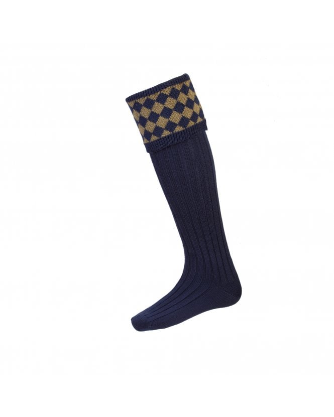 House of Cheviot Men's Chessboard Sock Navy/Dark Olive