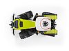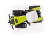 The power packed into the Claas Xerion 5000 is obvious at firstglance. Its shear force becomes apparent by merely looking at itsdesign and the wheels which are all of the same size. However, whendeveloping the original of this vehicle, the manufacturer sought tocombine this power with intelligent solutions that make the vehicleversatile enough to be used for a variety of applications. This is whythe Xerion is described by Claas to possess "intelligent power." Asyou have come to expect from BRUDER Spielwaren, the model of thisoriginal possesses the exact same properties. True to our objective,we developed features for this model - just as for our other models -that can also be found in the original while being unique for a toy.These features include the wheels that BRUDER designed in such a waythat they can be steered through the sliding cab roof and clip-onsteering column, while the cab can be rotated without interrupting the transmission connection. Just as in the original, it is possible to steer all 4 wheels simultaneously. During normal use, all wheels are steered while counter-rotating to achieve the smallest possible turn radius. Another unique feature is the offset driving (crab steering)of the original which can be re-enacted by operating an adjusting mechanism attached to the chassis. Apart from these particularities, this tractor stands out from the crowd by features one has come to expect from large BRUDER tractors and which include the glazed cabin with doors that can be opened or the height adjustable rear coupling.