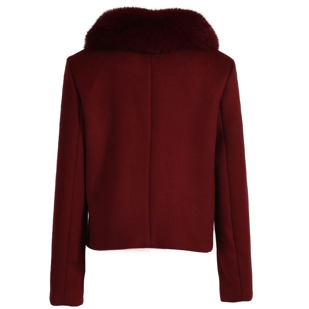 The detachable faux fur collar adds an extra touch of glamour to the coat and allows for some versatility in styling, depending on the occasion or personal preference. This feature also makes the coat more practical, as it can be easily removed and re-attached as needed.