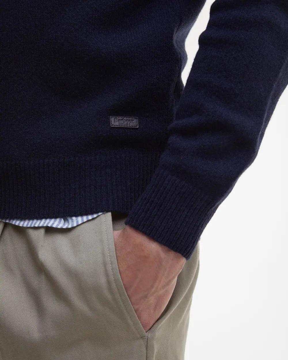 Crafted from 100% wool, this Barbour sweatshirt features leather elbow patches for a nod to country life. This garment is detailed with a crew neck and long sleeves, making it perfect for layering over shirts.