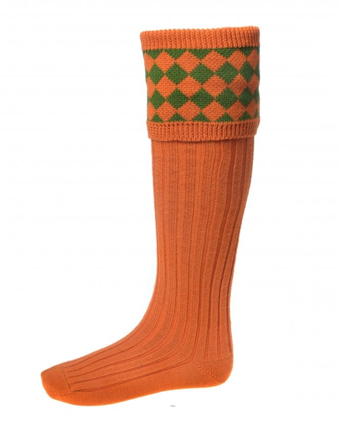 House Of Cheviot Men's Chessboard Sock Burnt Orange/Ivy Green