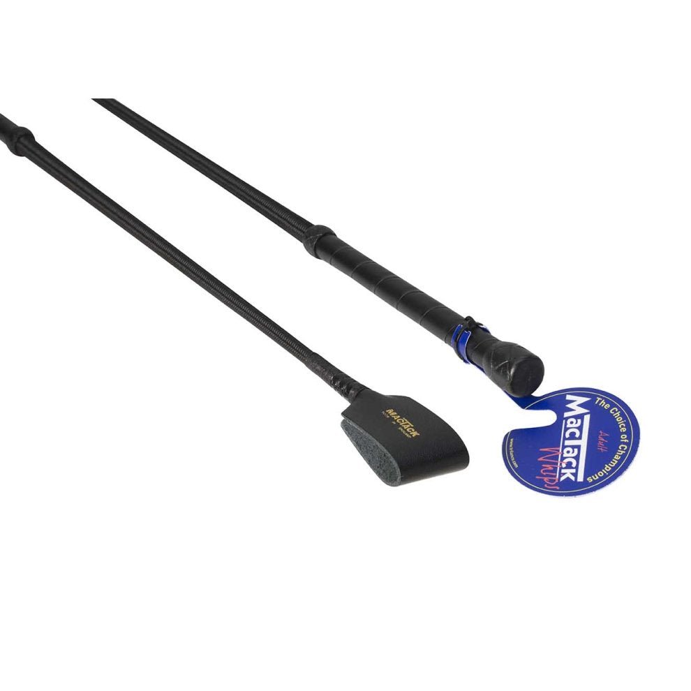 Plain riding whip for any discipline This traditional short whip from MacTack comes in black or brown and is suitable for any riding activity. It is especially suited for ladies or children and is ideal for the show ring. Features Woven stock with wrapped rubber handle Wide square leather keeper. Suggested uses Showing, hunting, jumping, eventing, general riding.