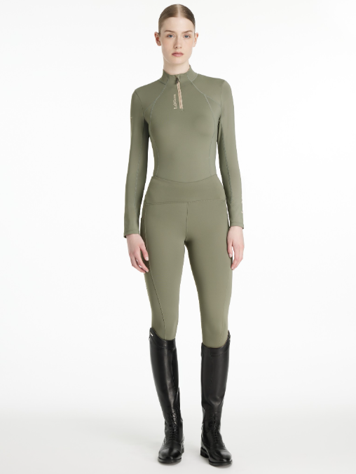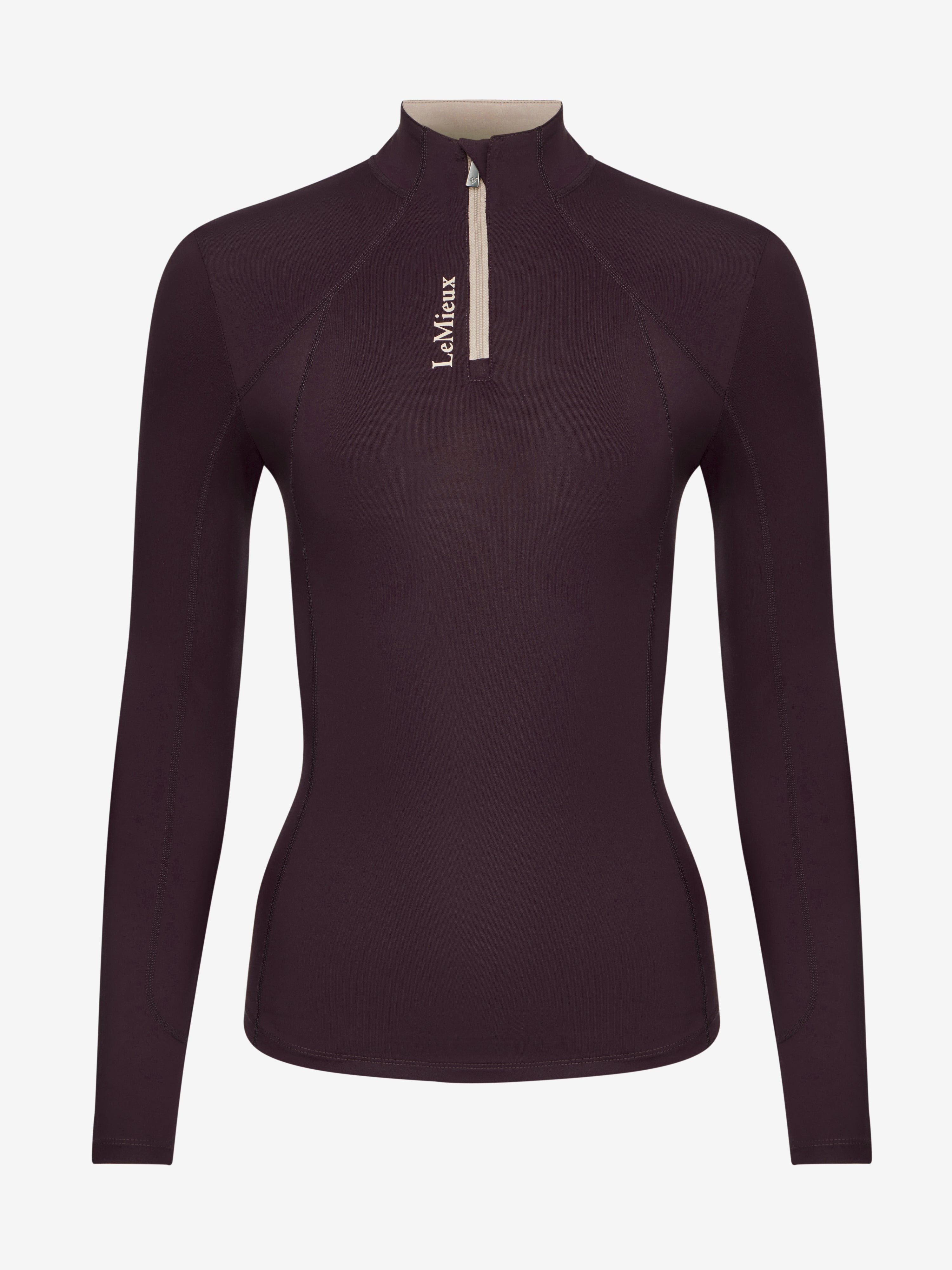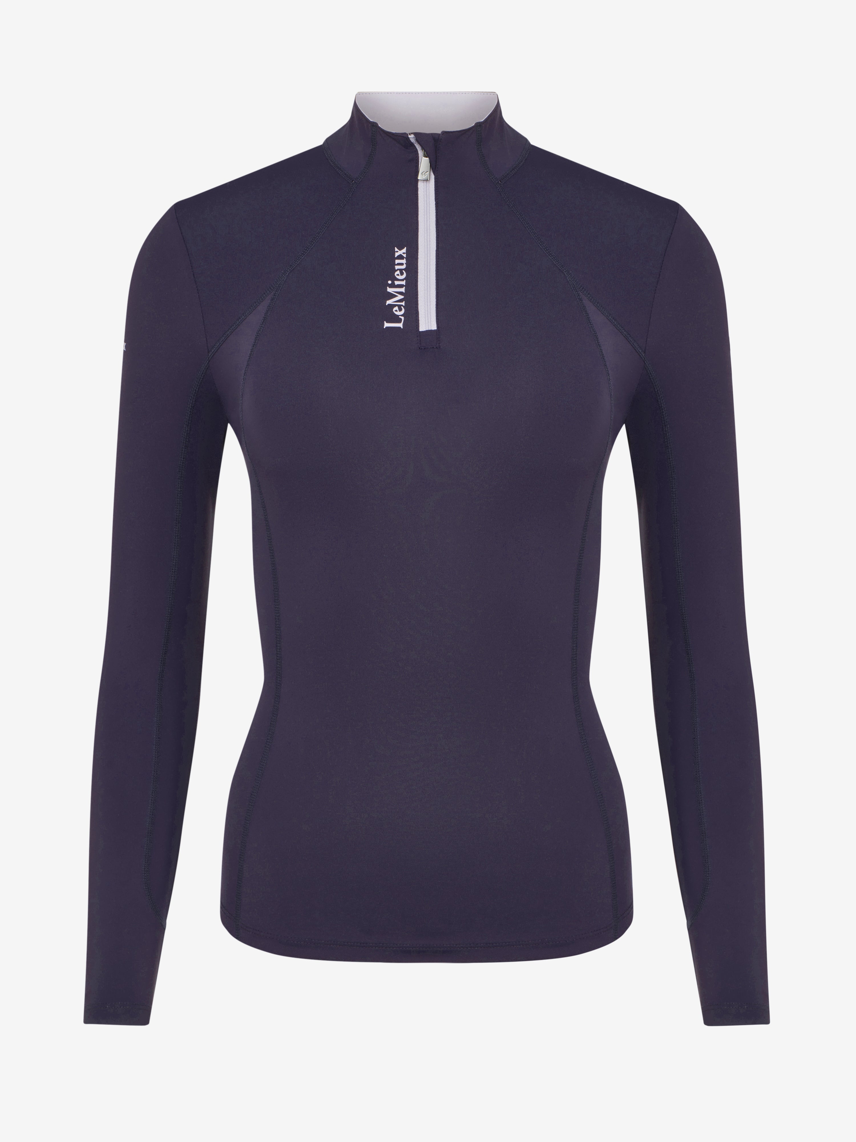 Do it all in this UV50+ quarter zip base layer. Its technical fabric regulates your body temperature, with vented underarms to keep you cool and dry. Contrast matte logo print is a subtle sign of the quality you expect from LeMieux.