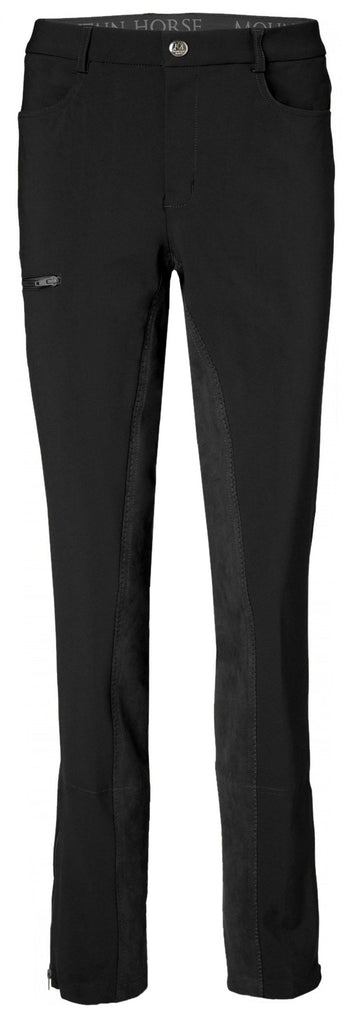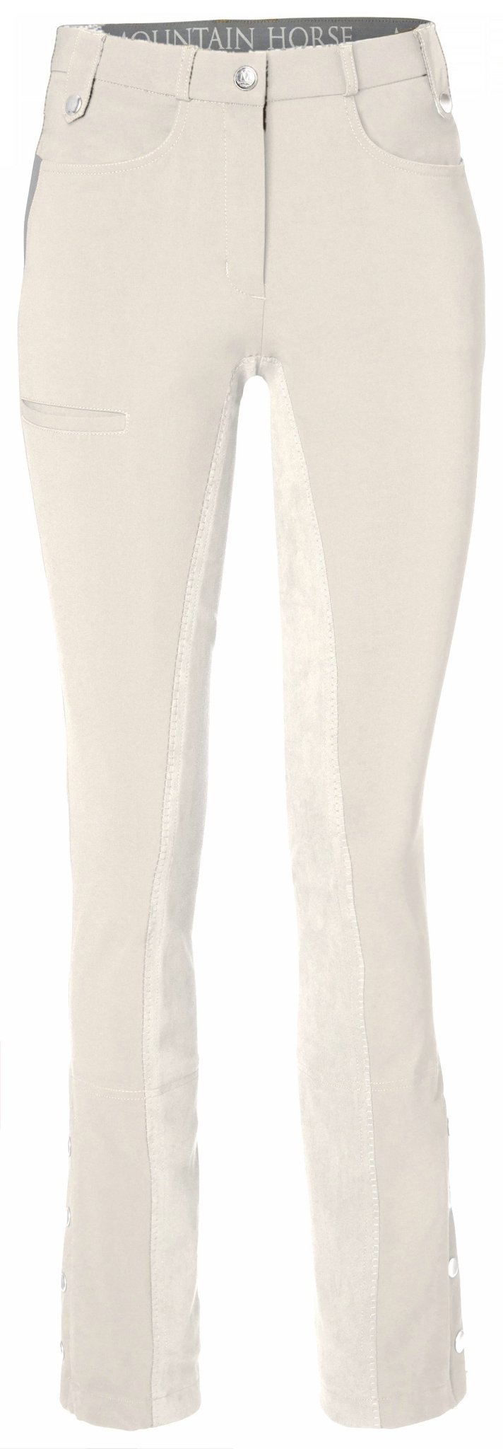 These ladies jodhpurs can be worn throughout the year and are made from a durable, flexible fabric that provides a comfortable fit. The full seat design offers a strong grip, and the leg includes zippers and foot straps for added convenience. Additionally, there is a pocket on the leg for storage.