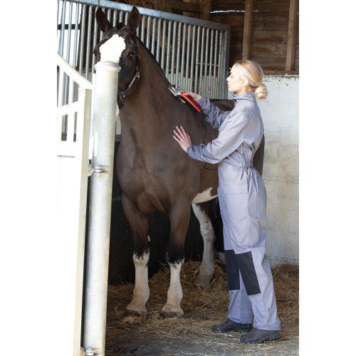 Exclusive to Equetech, these coveralls / overalls have been designed by a professional horse clipper and an absolute must have item for any horse owner and groomer! Manufactured from durable poly/cotton with a tight weave to stop hair transferring to the body. Other features include an elastic draw cord neck to stop hair getting in through your neck opening, water resistant reinforced knee panels, front flap pockets to keep treats and oil in, elastic cuffs to stop hair getting in via your sleeves, back vent to allow shoulder movement whilst clipping and a comfort elastic waistband. These are the ultimate clipping overalls, lightweight for all year round clipping and machine wash with quick drying properties! Available in XS-XXL as standard Registered Design No. 6175955