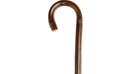 Economy Crook Stick, Gents Chestnut. Made from natural Chestnut, stained, lacquered and fitted with rubber ferrule.