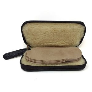 Natural full-grain leather fly wallet with a thick, soft fleece interior.