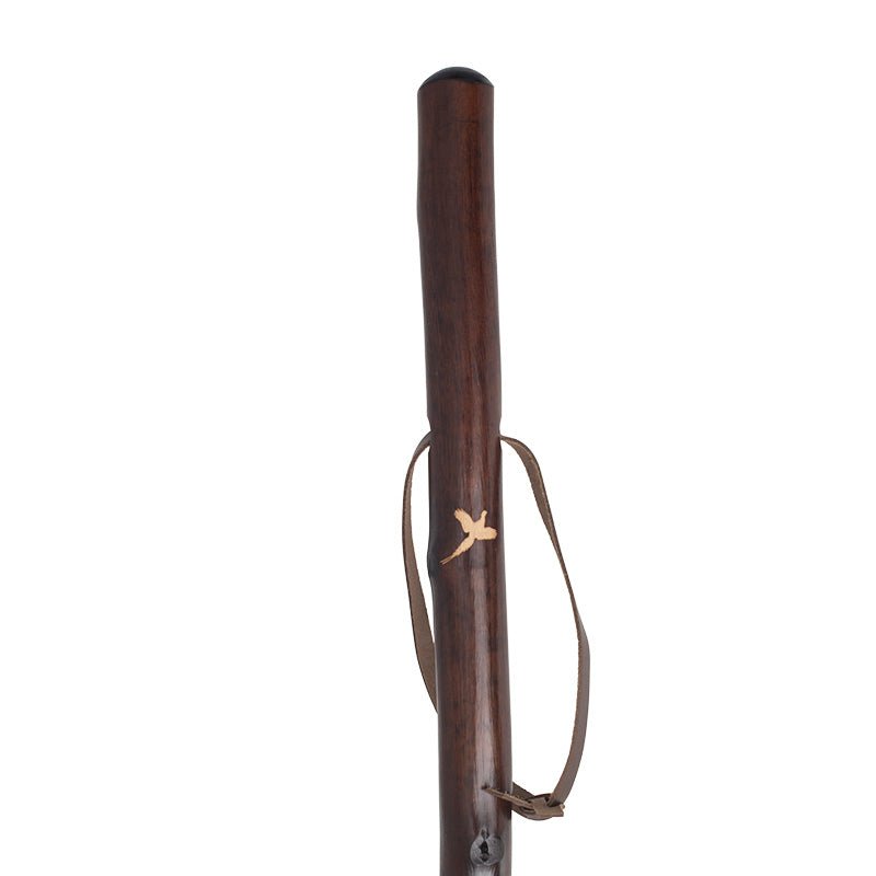 A sturdy everyday hiking staff in attractive chestnut wood, distinguished by a laser engraved image of a pheasant.