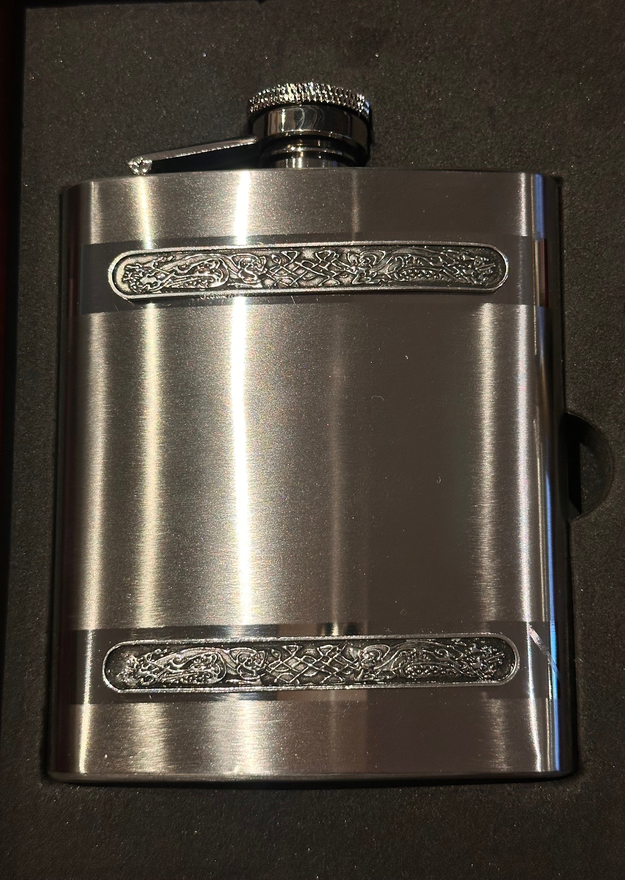 Mullingar Pewter Stainless Steel Hip Flask in Gift Box