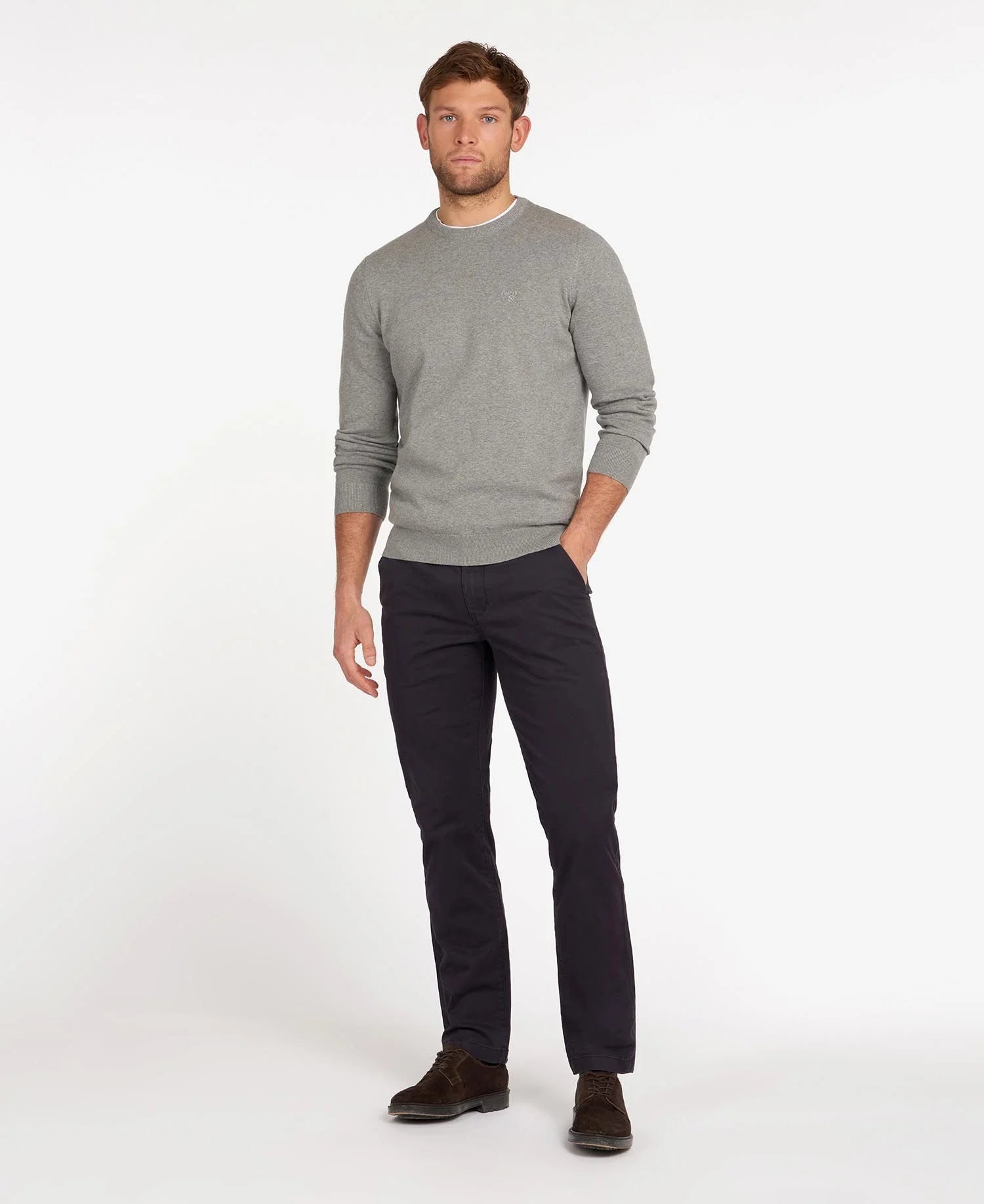 Elevate your wardrobe with the Barbour Men's Pima Cotton Crew Neck, a must-have for those who appreciate both style and comfort. Crafted from luxuriously smooth Pima cotton, this crew neck sweater is designed to be your go-to layer, ideal for any season.