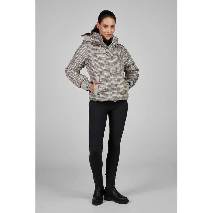 This expert-designed Pikeur AW25 Quilted Jacket in pale grey combines tailored elegance with advanced warmth technology. Crafted from high-quality nylon, it features a precise fitted cut and Sorona fibreball filling for superior heat retention. The back’s heat-storing lining enhances insulation where you need it most. The attached hood offers adjustable fit with elastic cords and secures easily via a magnetic click system. Practical details include an inside phone pocket, blending functionality seamlessly with refined style for demanding riders.