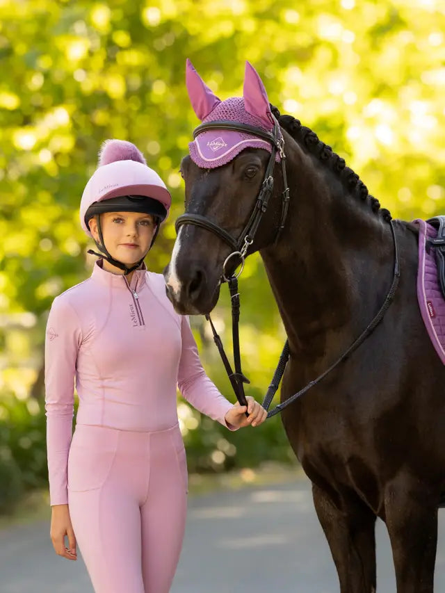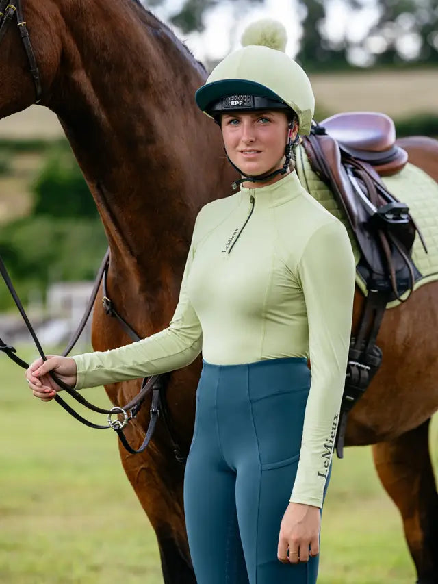 It's finished for SP26 with matte LeMieux branding details to match the Classique Base Layer, plus a contrast peak, colour-pop under-brim and a luxurious faux fur pom pom.