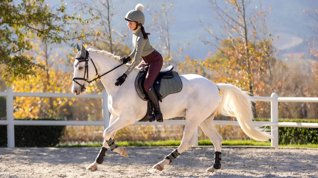 The luxurious yet easy-care suede-effect upper is perfect for everyday occasions, while contoured suede-effect binding prevents mis-shaping. The natural bamboo blend lining absorbs and controls sweat under the saddle. It's also beautifully comfortable and secure, minimising friction even on sensitive-skinned horses.