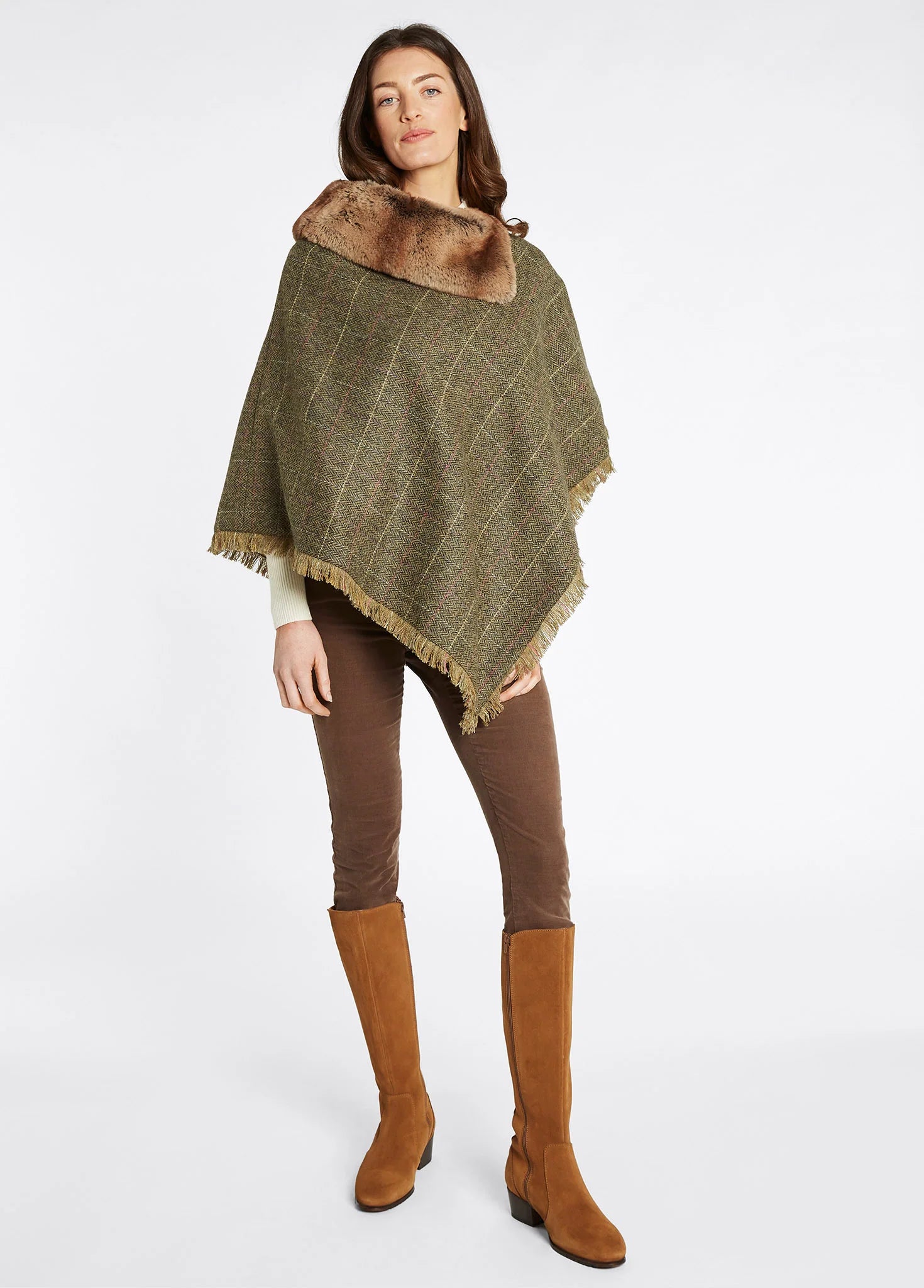 Get lost in the gloriously soft collar on our Silverfir poncho. Standing up or folded down, it’s utterly snuggly and an eye-catching addition to this beautiful tweed layer. Throw over a knit with jeans or match with a Dubarry tweed skirt for a touch of simple sophistication.