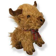 Hairy Highland Cow Door Stop with tartan ribbon.