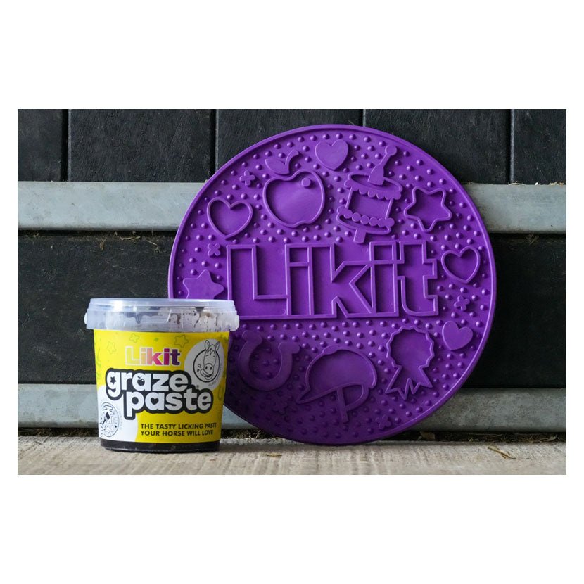 The slow feeding lick mat designed especially for horses. Simply spread with our tasty Likit Graze Paste and sprinkle on some feed or treats of your choice, the possibilities are endless! Or place in your feed bucket and use as a slow feeder.