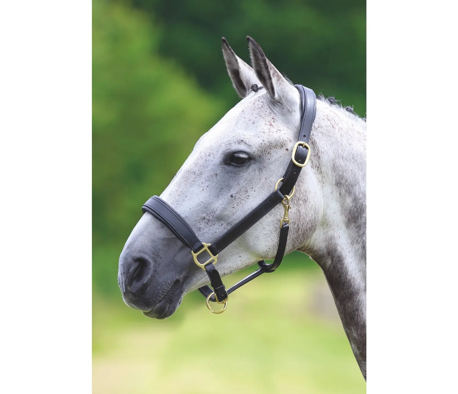 The smart Velociti GARA leather headcollar features generous padding at the headpiece and noseband making it particularly suitable when travelling. Adjustable on both sides of the headpiece with crank style noseband and clip-on throatlash. Quality brass fittings finish the look. Environmentally vegetable dyed leather for deep colour.