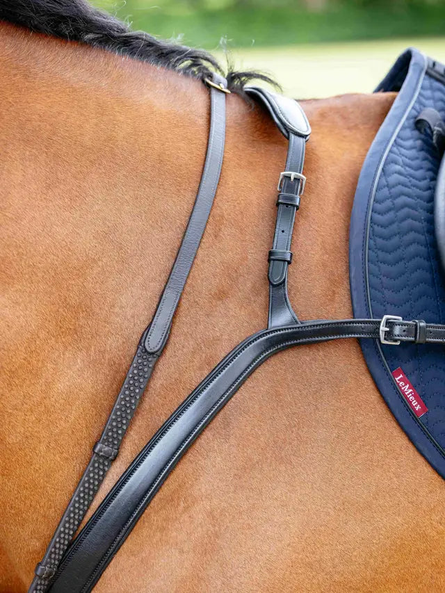 This anatomically swept back bridge breastplate features girth strap attachments which provide ultimate stability, while staying clear of moving shoulders. Padded across the chest and withers, it's comfortable and well-fitting with multiple adjustment points to ensure even weight distribution.
