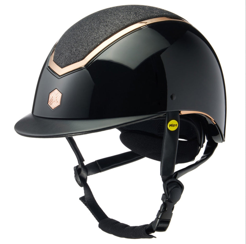 Charles Owen Halo Riding Helmet - Midnight Gloss - Rose Gold Ring