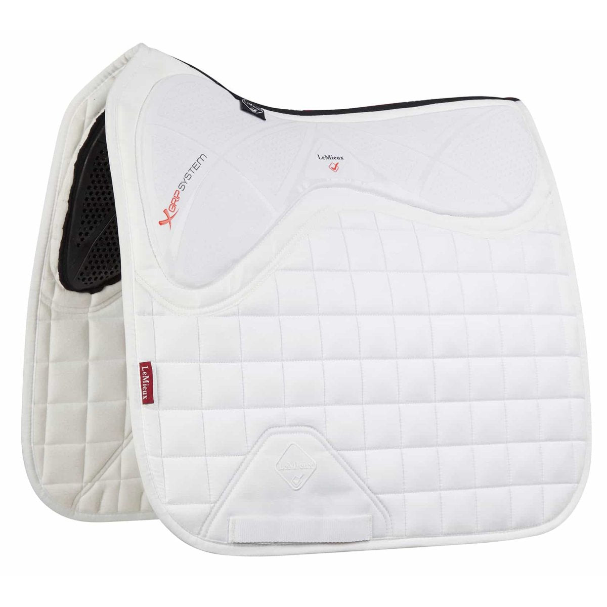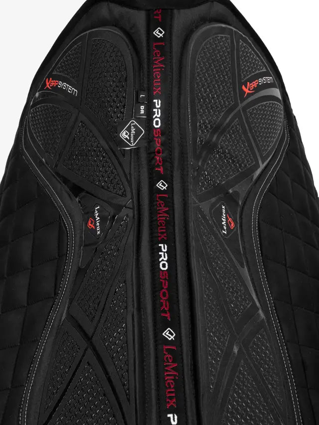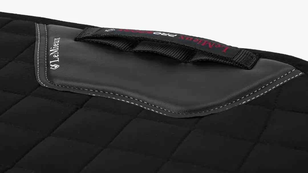 The Twin Sided X-Grip Dressage square combines the stylish, iconic LeMieux cut with the new X-Grip silicone & bespoke Acavallo Gel mould to provide the maximum saddle stability, shock absorbency and grip of any saddle pad! The unique 3 layer design combines the X-Grip silicone top side, Blast foam core & Acavallo gel underside to create one low profile highly effective pad. The lower density memory foam under the X-Grip silicone aids saddles to bed down and stabilise whilst the bespoke X-Grip Acavallo gel underside has the same low profile, non-slip credentials as all Acavallo products. This twin sided technology makes this the most elite product in the LeMieux stable.