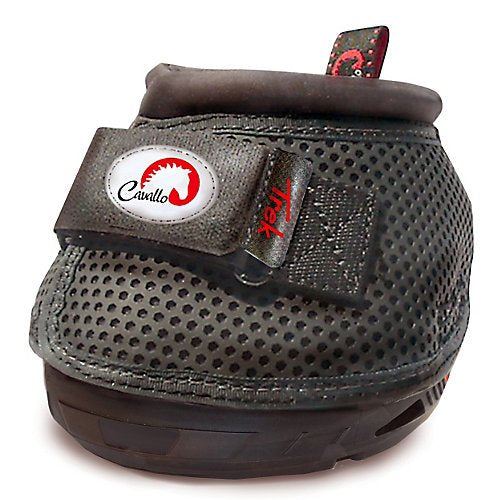 Lightweight, multi-purpose, flexible all-terrain Cavallo Trek horse hoof boot for barefoot horses as an alternative to metal shoes, users who need to replace a lost metal shoe, for rehab of an injured hoof or horses that have odd sized feet. Trek Regular tread pattern supports hoof wall, offers great traction and minimizes pressure. Features built-in sole relief that takes pressure off sole, bars and frog. Sole width is same as sole length so it's easy to measure. Unique features: Fits left or right hooves Pull tab for easy on Patented replaceable Velcro closure system Patented Pro Mesh molded TPU upper for high performance tear strength and abrasion resistance Honeycomb upper design optimizes strength and minimizes weightTrek Regular tread pattern supports hoof wall, offers great traction and minimizes pressure. Features built-in sole relief that takes pressure off sole, bars and frog. Sole width is same as sole length so it's easy to measure.Single boot.