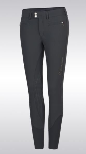 Thanks to the special construction of the fabric the Adèle breeches offer protection against ultraviolet rays. The breeches are embellished with a Swarovski® Samshield logo on the rider’s thigh and Crystal Fabric Swarovski® on the back pockets combining technical performance and elegance.