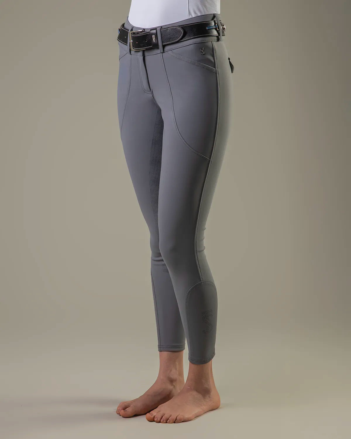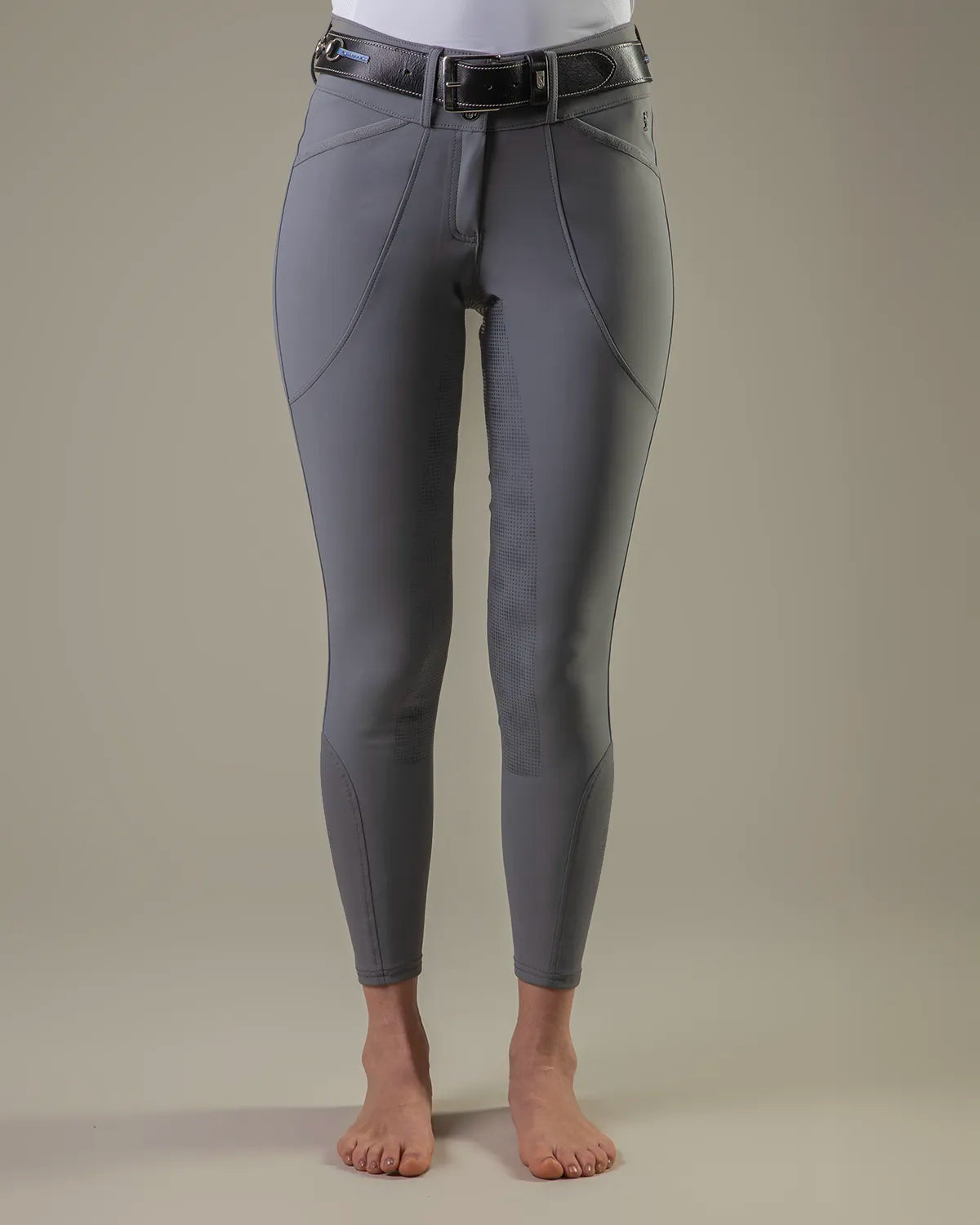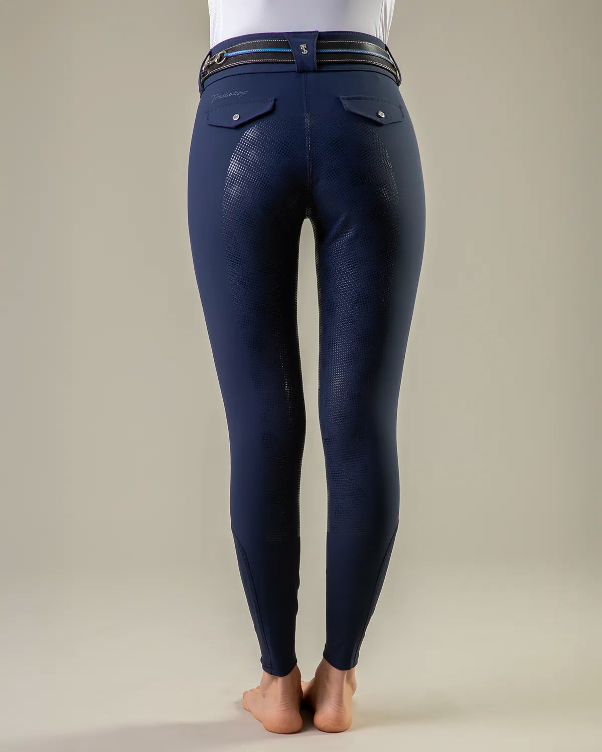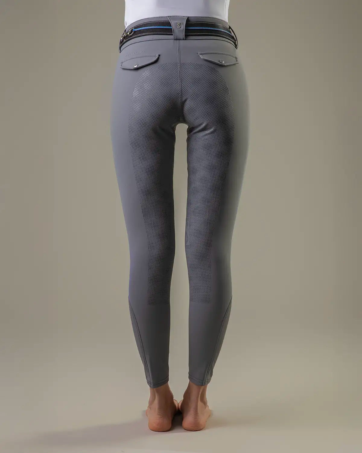 • Styled as a Mid rise tight with slimline covered pockets, Silicon directly on fabric to create a Full Seat with perfect grip