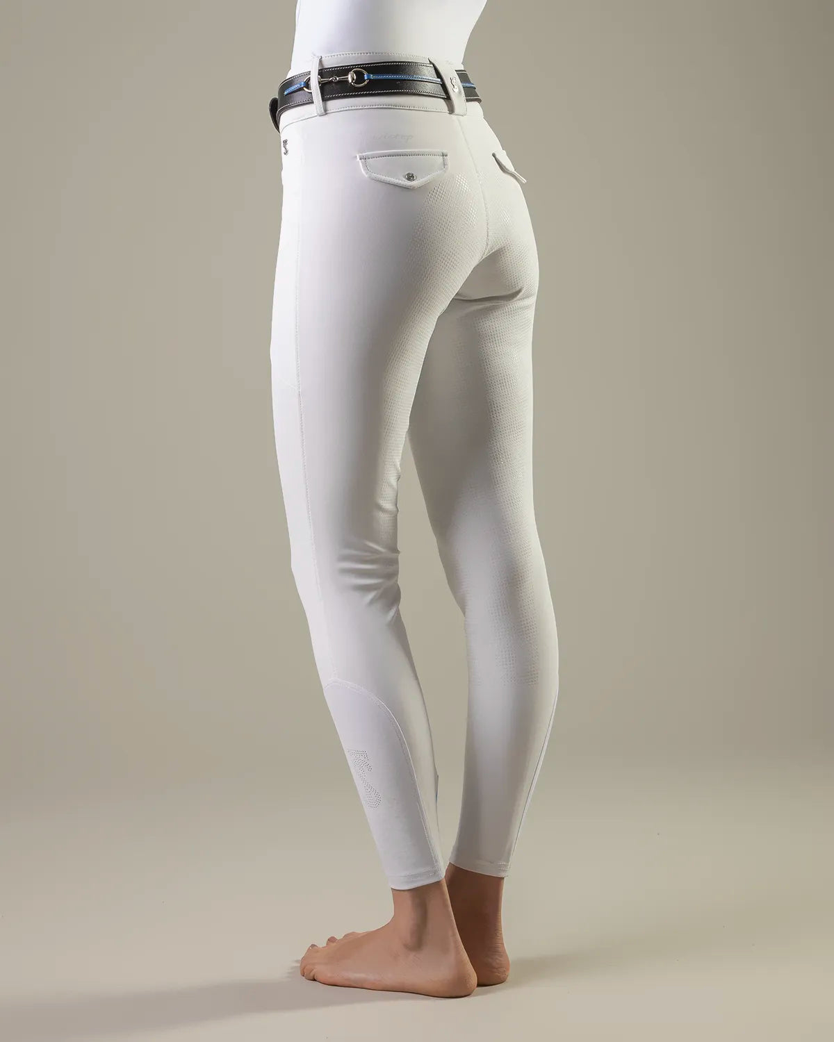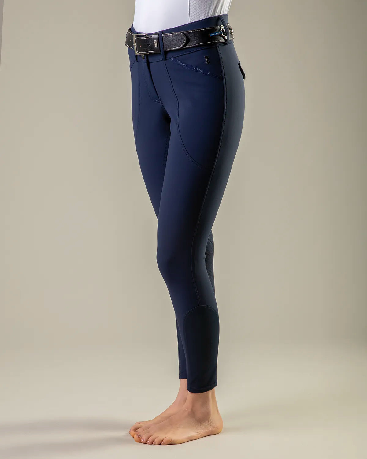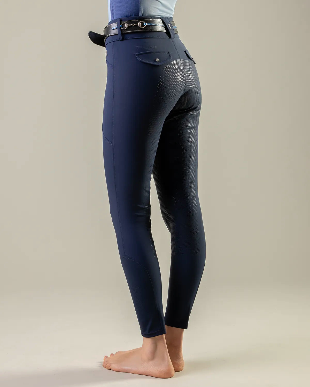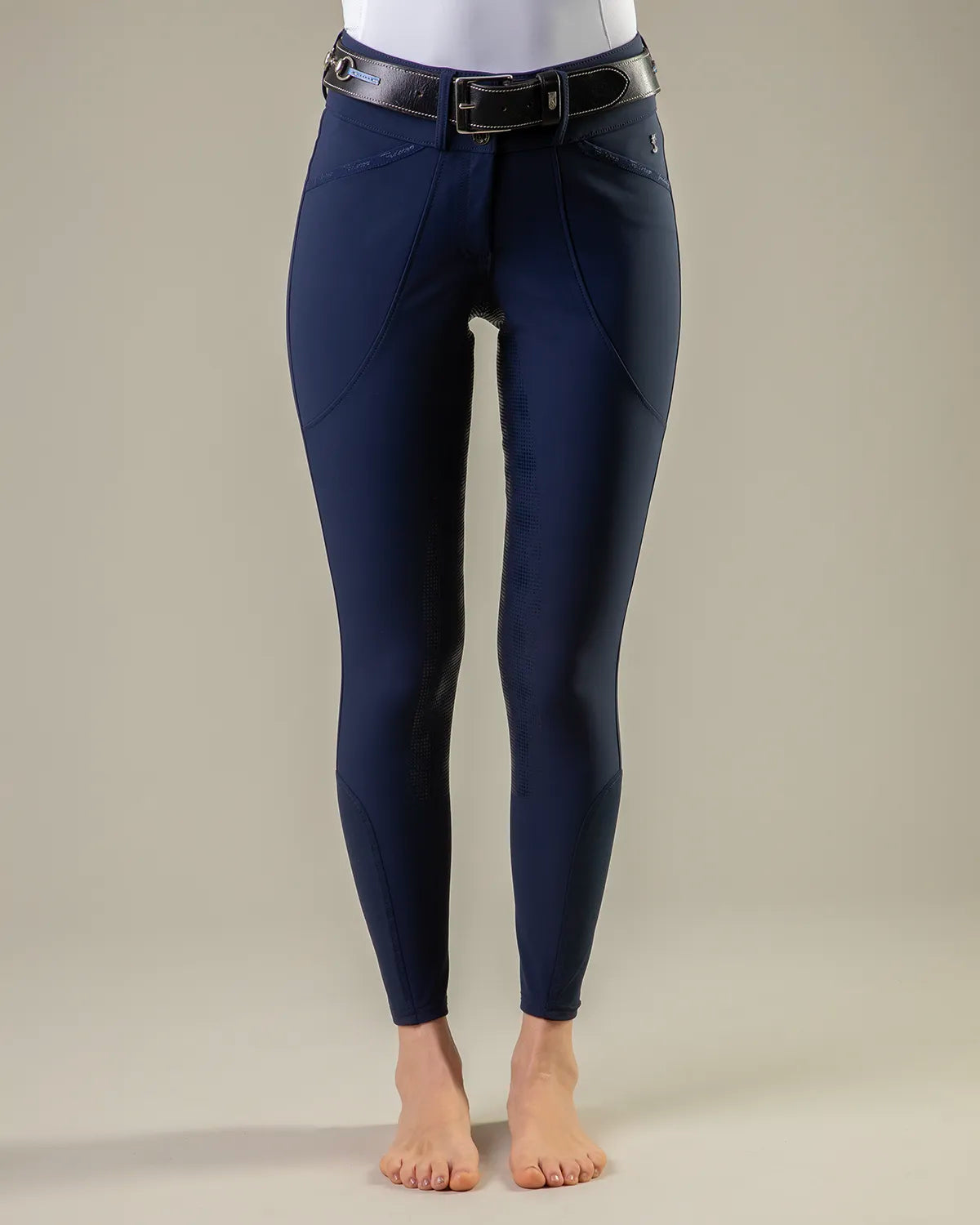 • Styled as a Mid rise tight with slimline covered pockets, Silicon directly on fabric to create a Full Seat with perfect grip